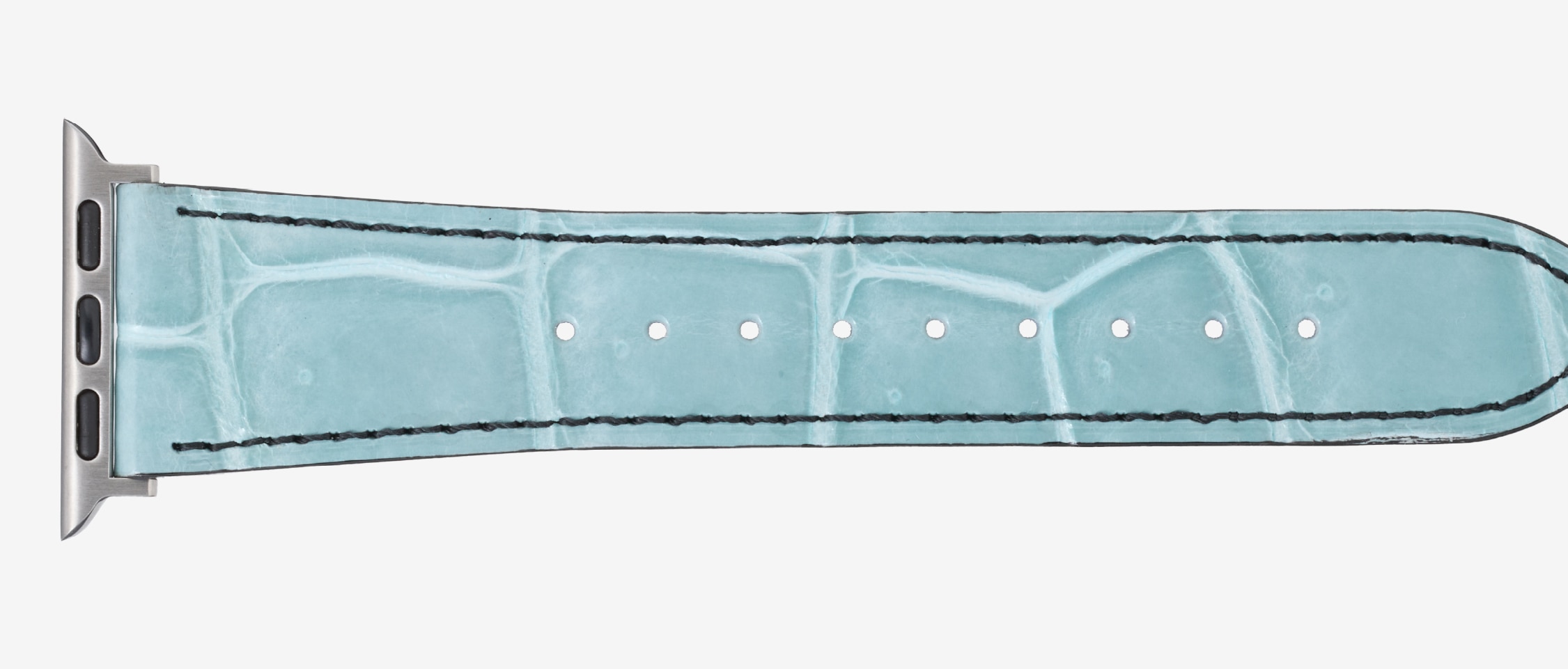 澄んだライトブルーが爽やかな存在感を放ちます。クロコダイルの腑模様が際立ち、手元を軽やかに上品へと導きます。