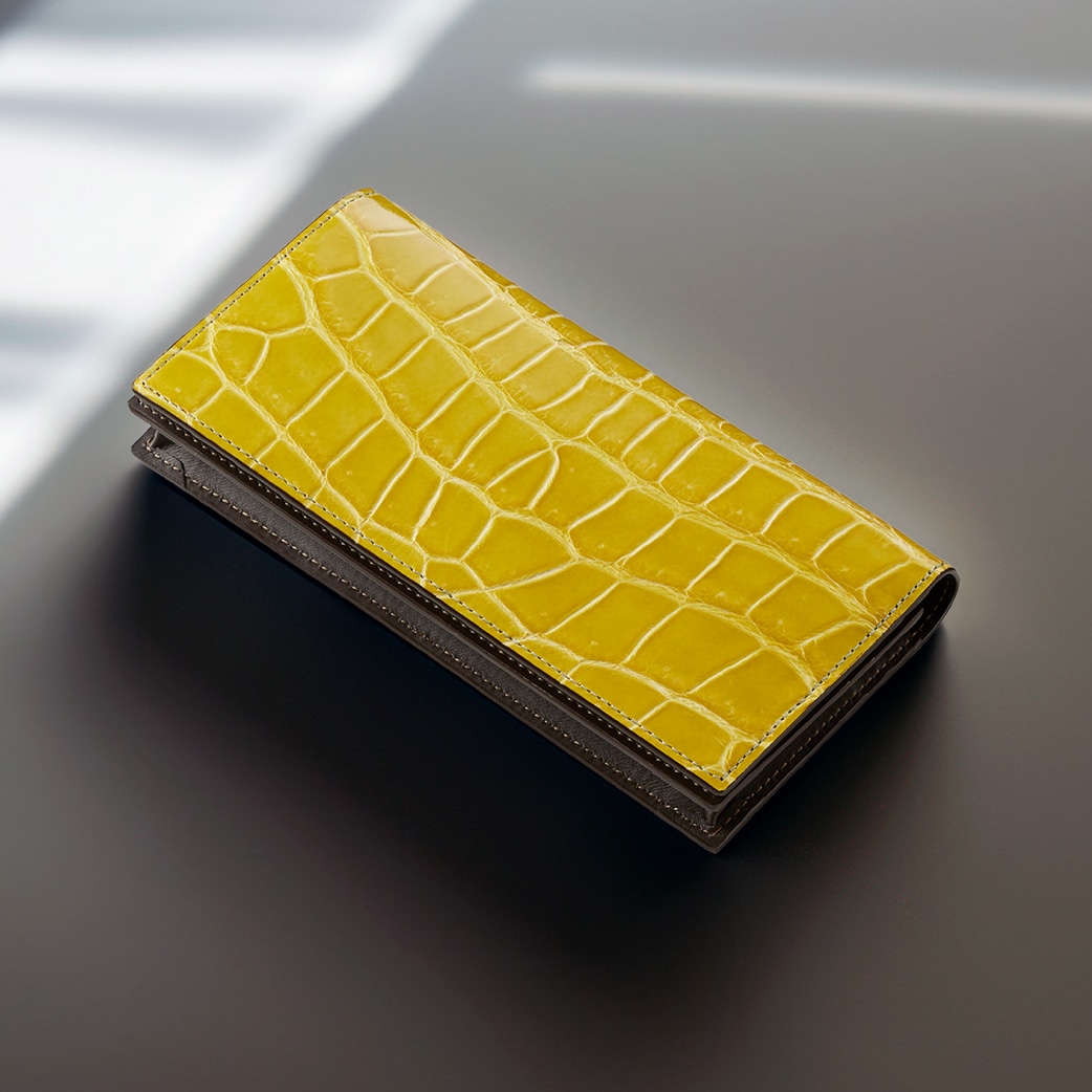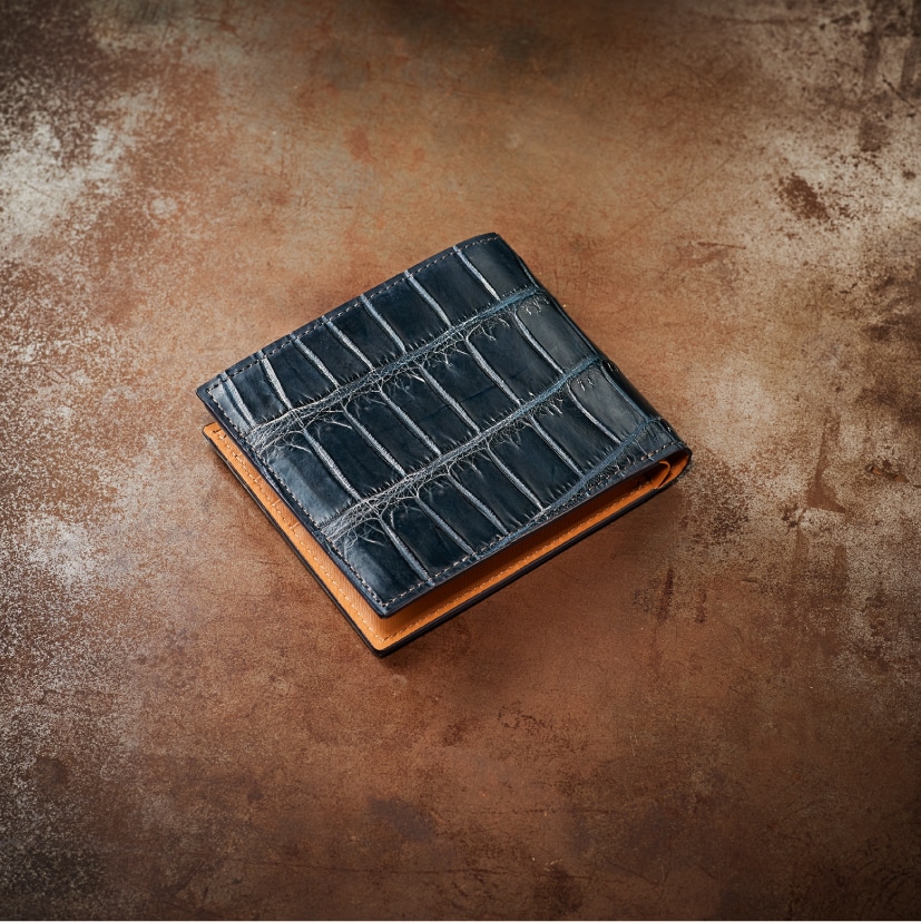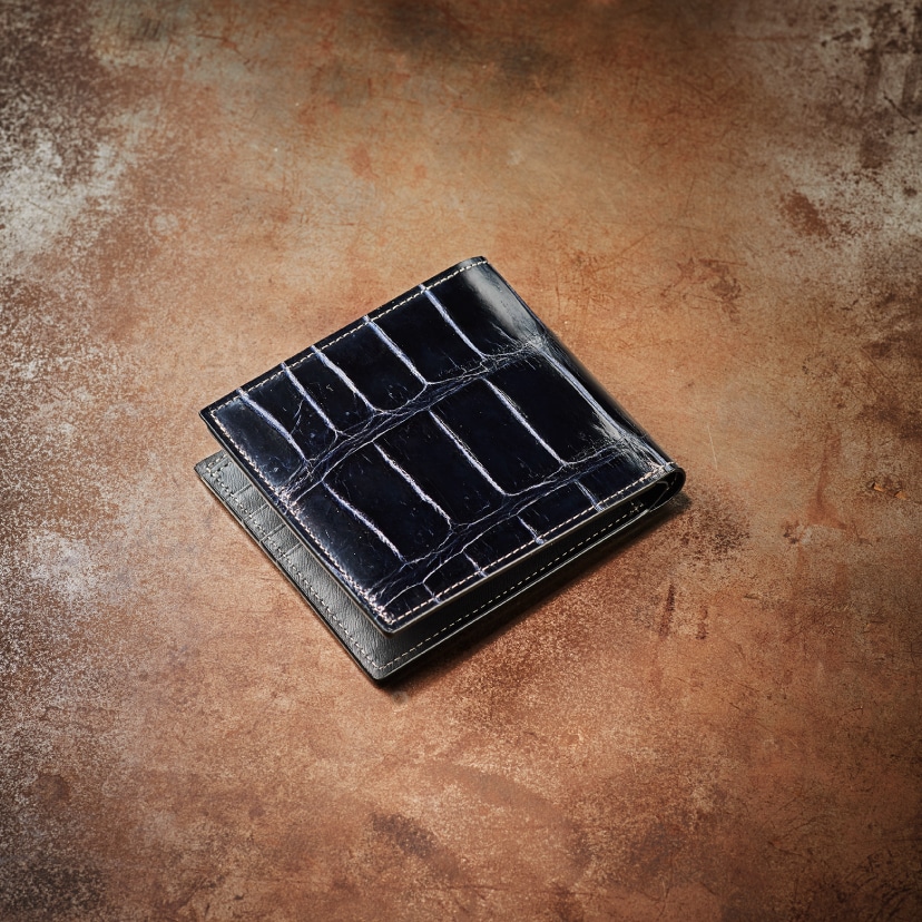 常に最高の素材を追求し続けた、究極のクロコダイルコレクション。お札とカード収納のスマート財布。