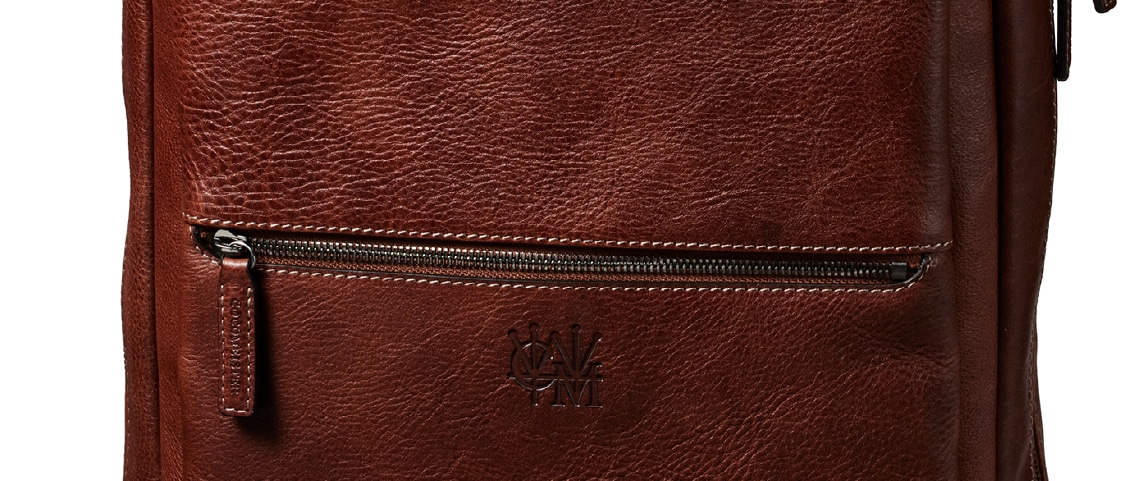 スタイリッシュな格好良さが魅力のスリム設計のバックパック。イギリス仕込みの天然皮革は、どんな紳士にも似合います。適度なタフさが、フォーマル感を少しだけ和らげています。