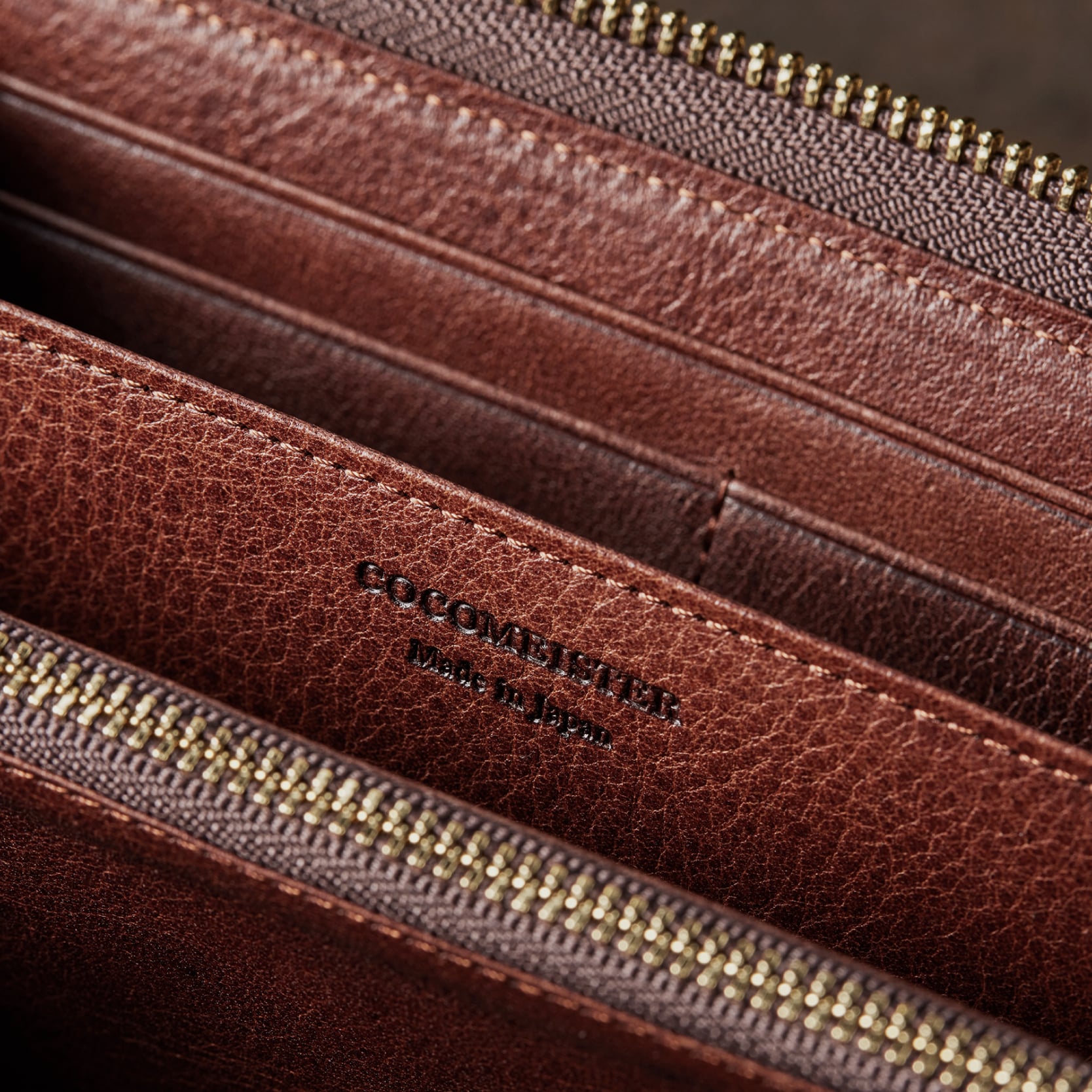ココマイスターは、外装と内装でコントラスト(色の違い)があるのが多い中で。ダーリントンコレクションは、外装と内装の色を同じにし、落ち着いたシックな統一感をお楽しみ頂けます。革の持つシンプルな上品さ、濃淡をご堪能頂けます。
