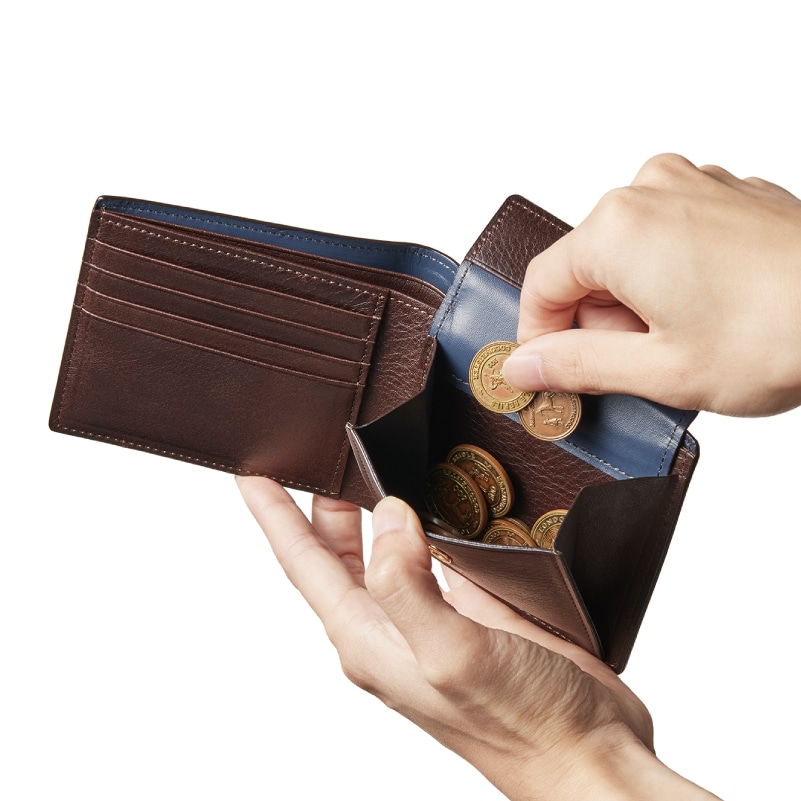 Detail 02小銭入れはBOX型にデザインされています。この形は日本伝統の2つ折り財布です。簡易的な作りが多いなかで、こだわりの小銭入れです。