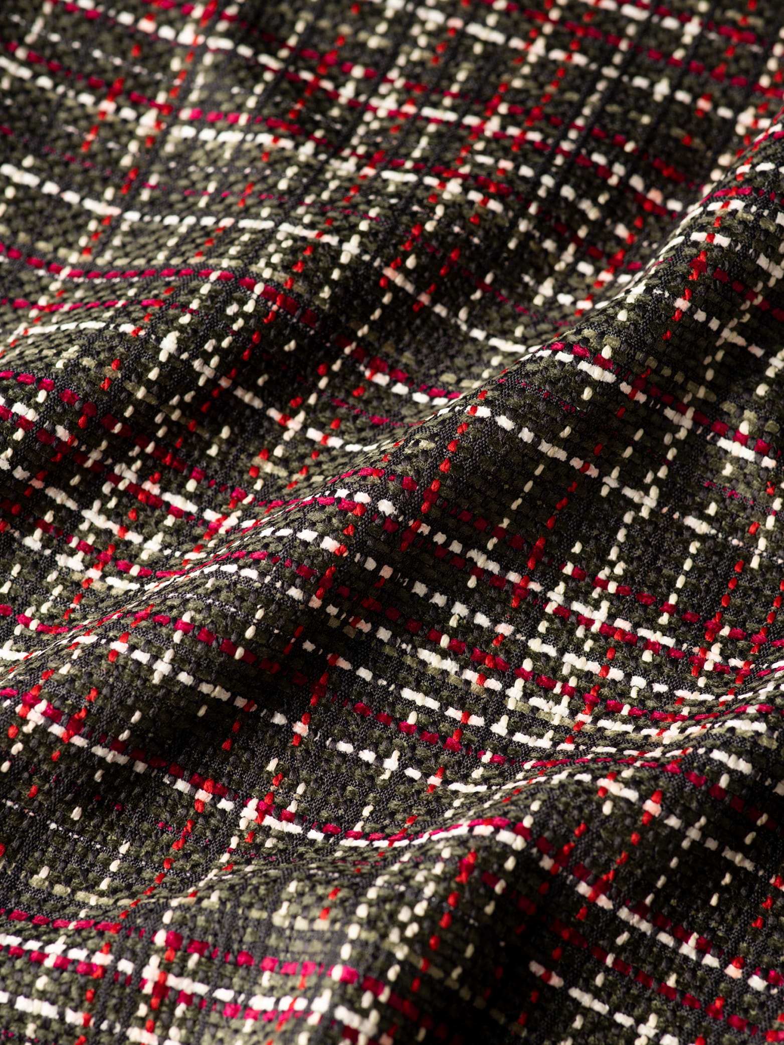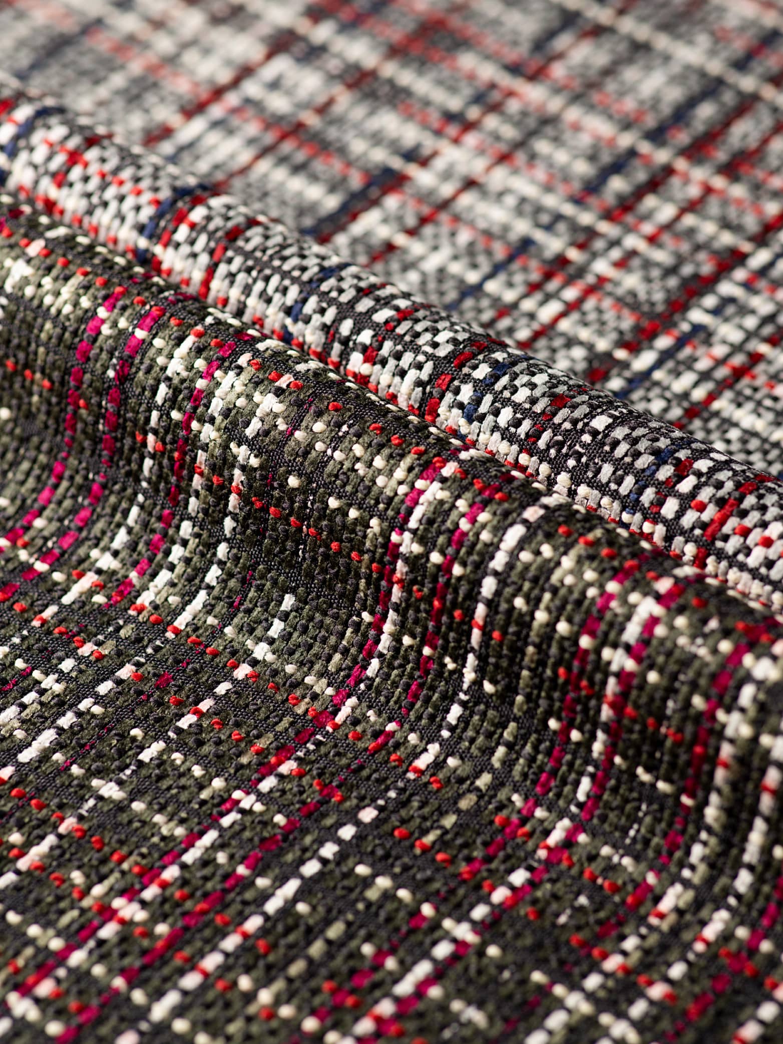 緑を基調とし、レッド&ホワイトの糸を立体的に織り込みました。緑の落ち着いた印象がありながらも、白と赤の糸によりお洒落に魅せてくれます。