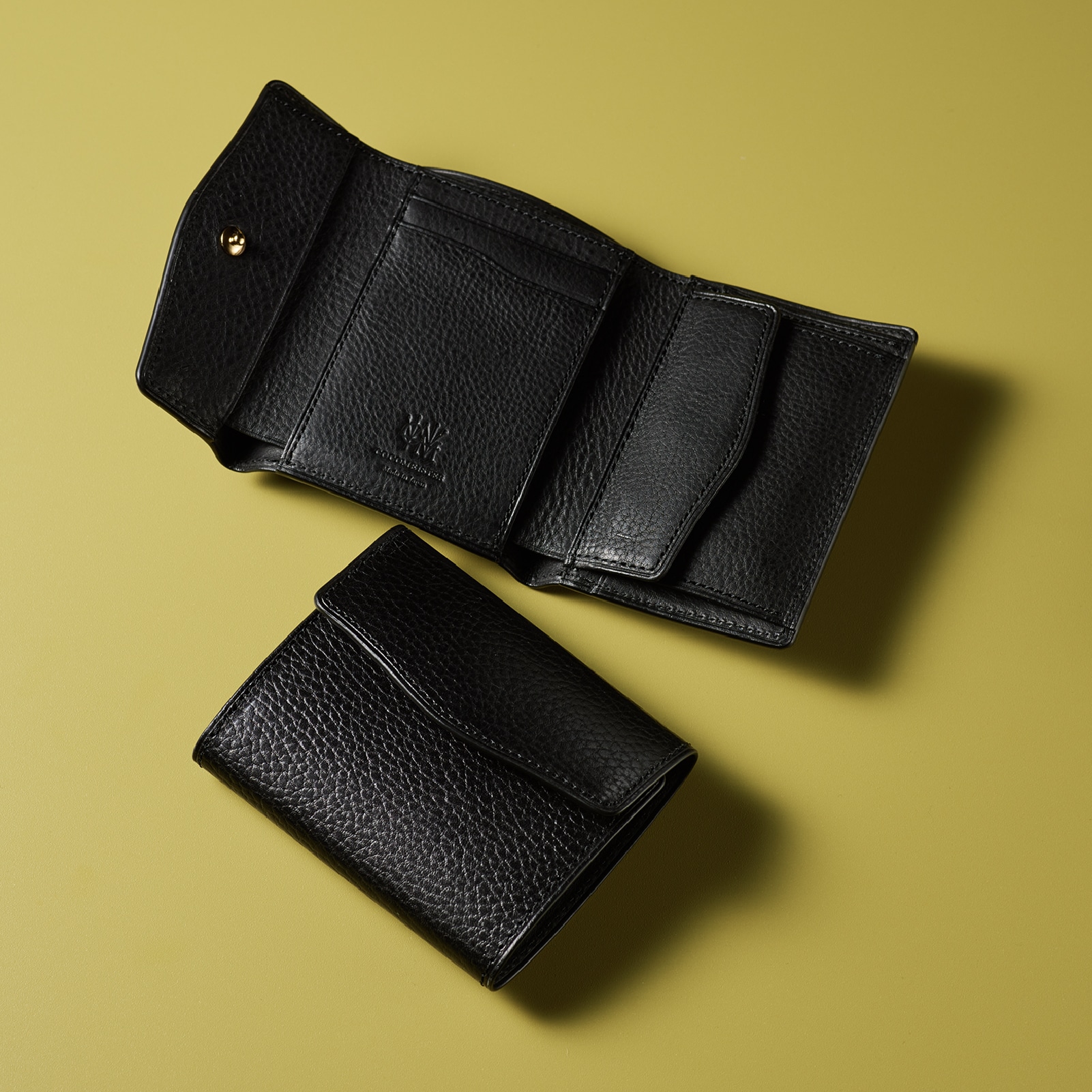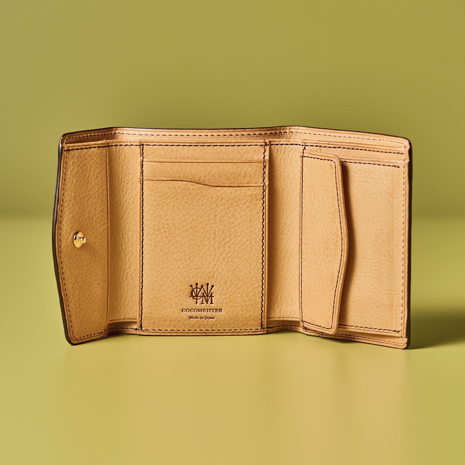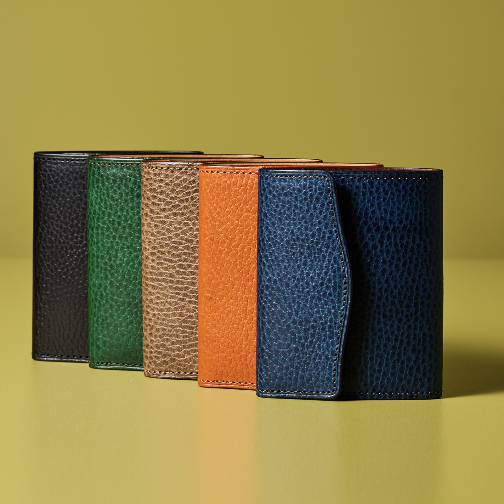 お札、カード、小銭を収納できるコンパクトな財布です。置いた時のフォルムもお洒落で、洗練されたデザインが魅力。曲線を多く取り入れることで、温かみのあるイタリアンレザーとシャープなデザインを両立しました。