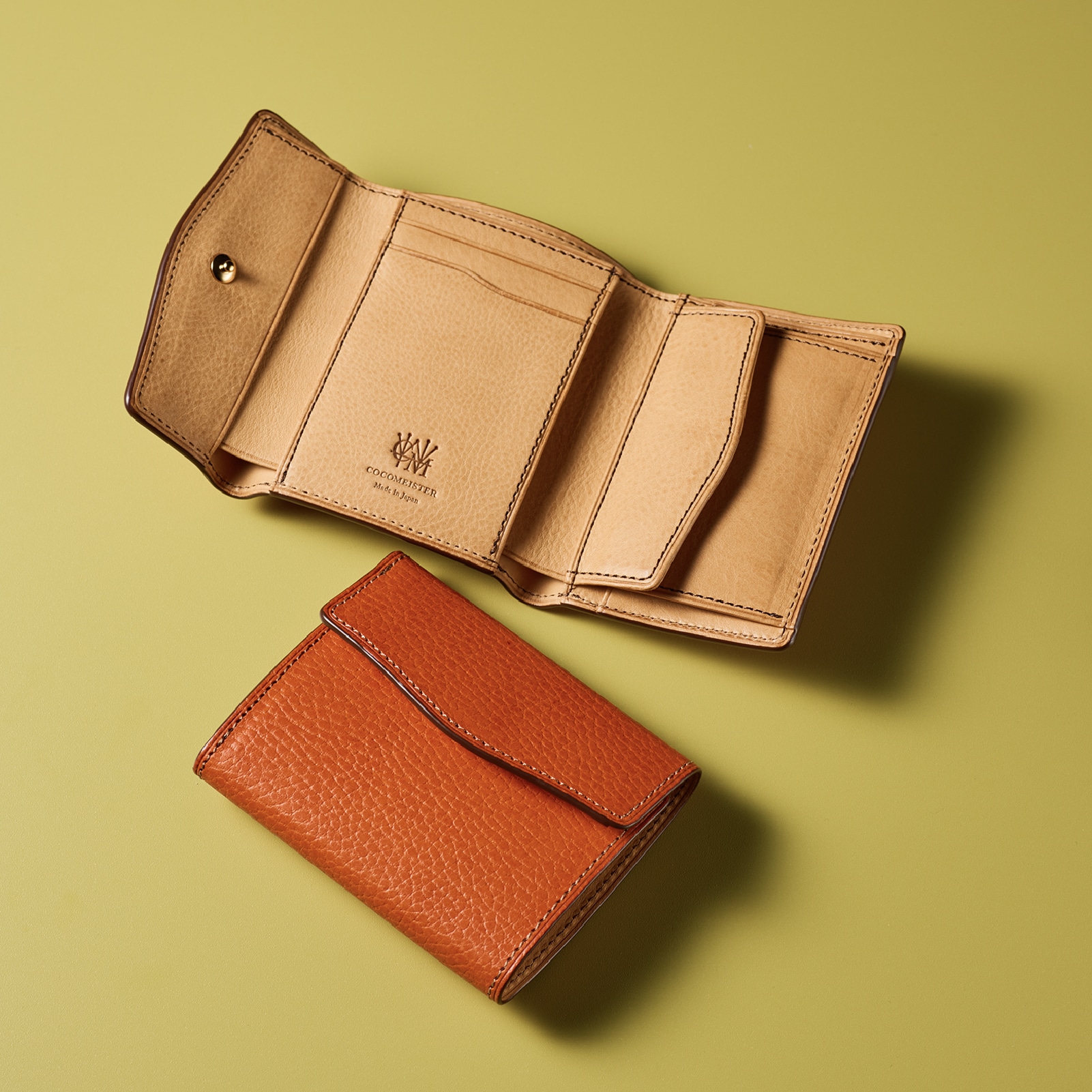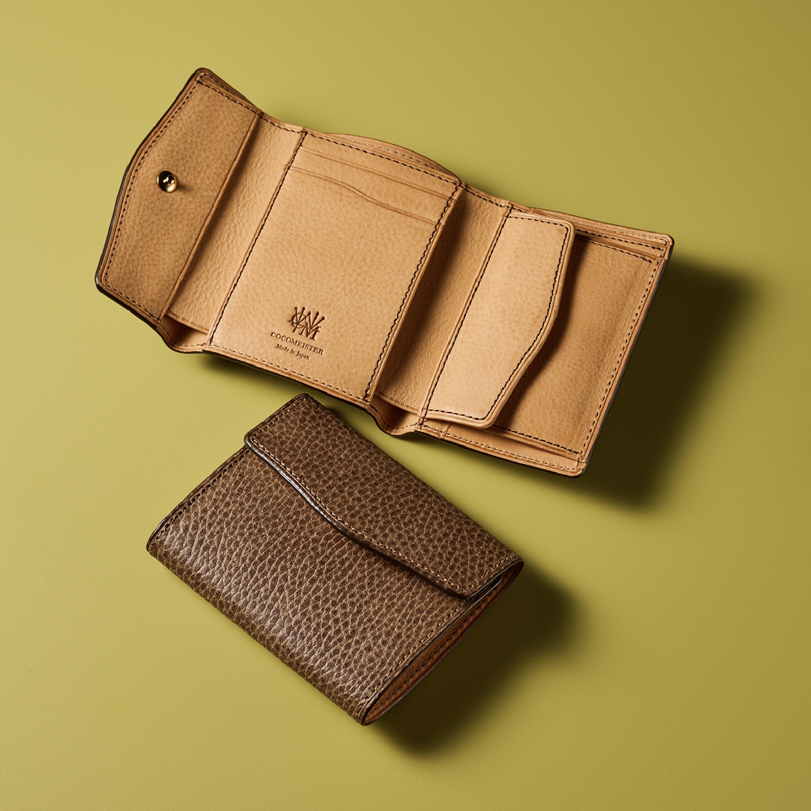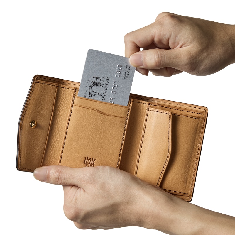 お札、カード、小銭を収納できるコンパクトな財布です。置いた時のフォルムもお洒落で、洗練されたデザインが魅力。曲線を多く取り入れることで、温かみのあるイタリアンレザーとシャープなデザインを両立しました。