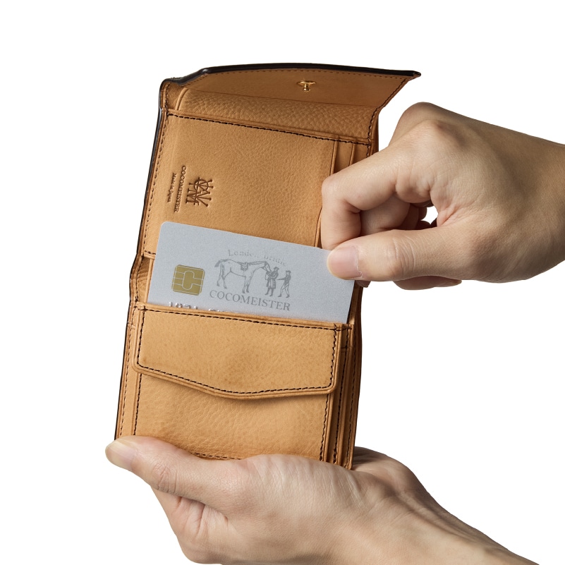 Detail 04カードは縦に2枚収納できるメインポケットを備え、曲線を採用することでお洒落な印象を演出します。