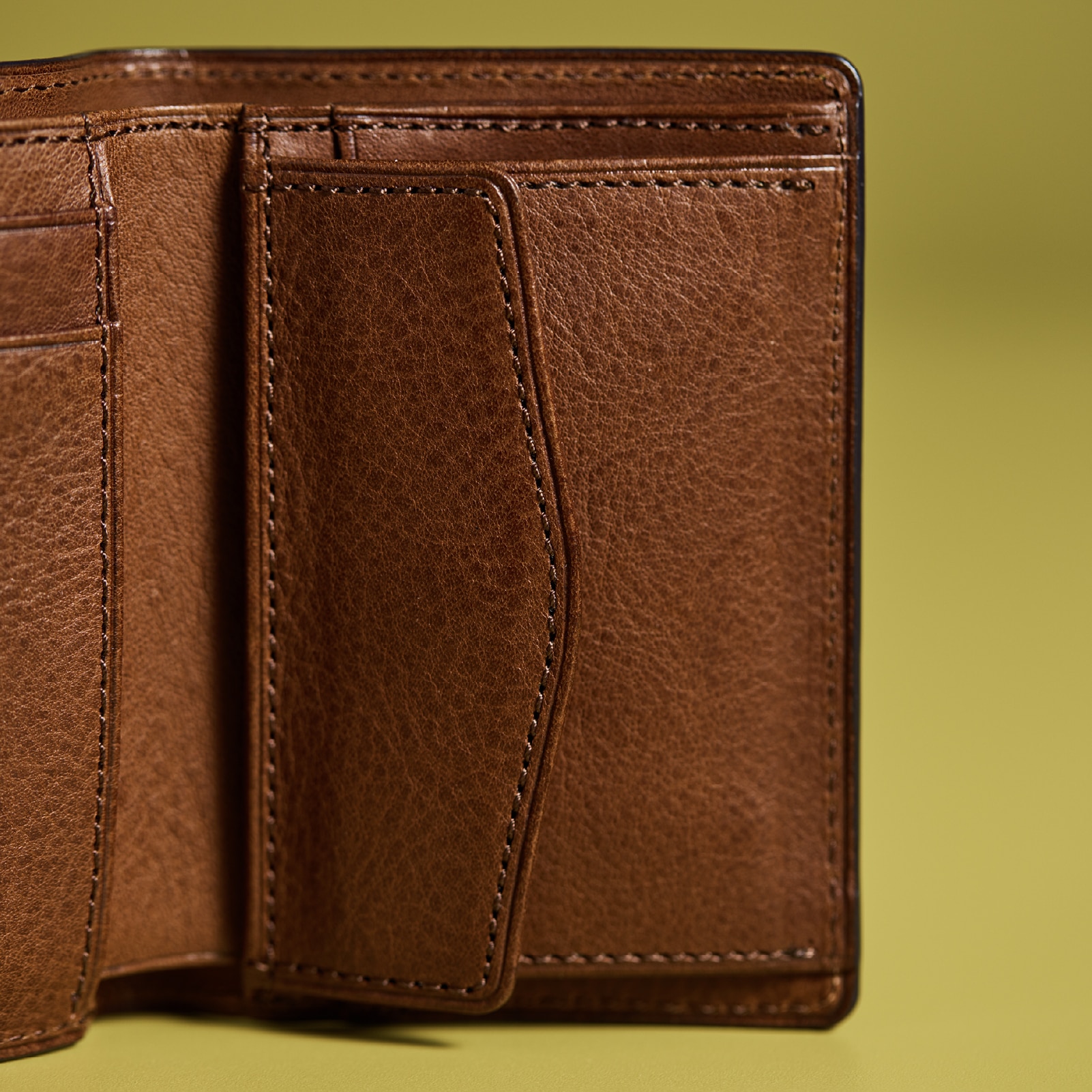 イタリア・トスカーナ地方の老舗タンナー、ワルピエ社とバダラッシ・カルロ社。徒歩圏内にある両タンナーは切磋琢磨し、高品質な革を生み出してきました。これらを組み合わせたのがフィレンツェシリーズです。メンデスは、お洒落なコンパクト財布で、お札、カード、小銭を収納でき、日常生活に必要な機能をすべて備えています。全体的に曲線を多く取り入れ、天然皮革の温かみとシャープなデザインの両立を実現しました。