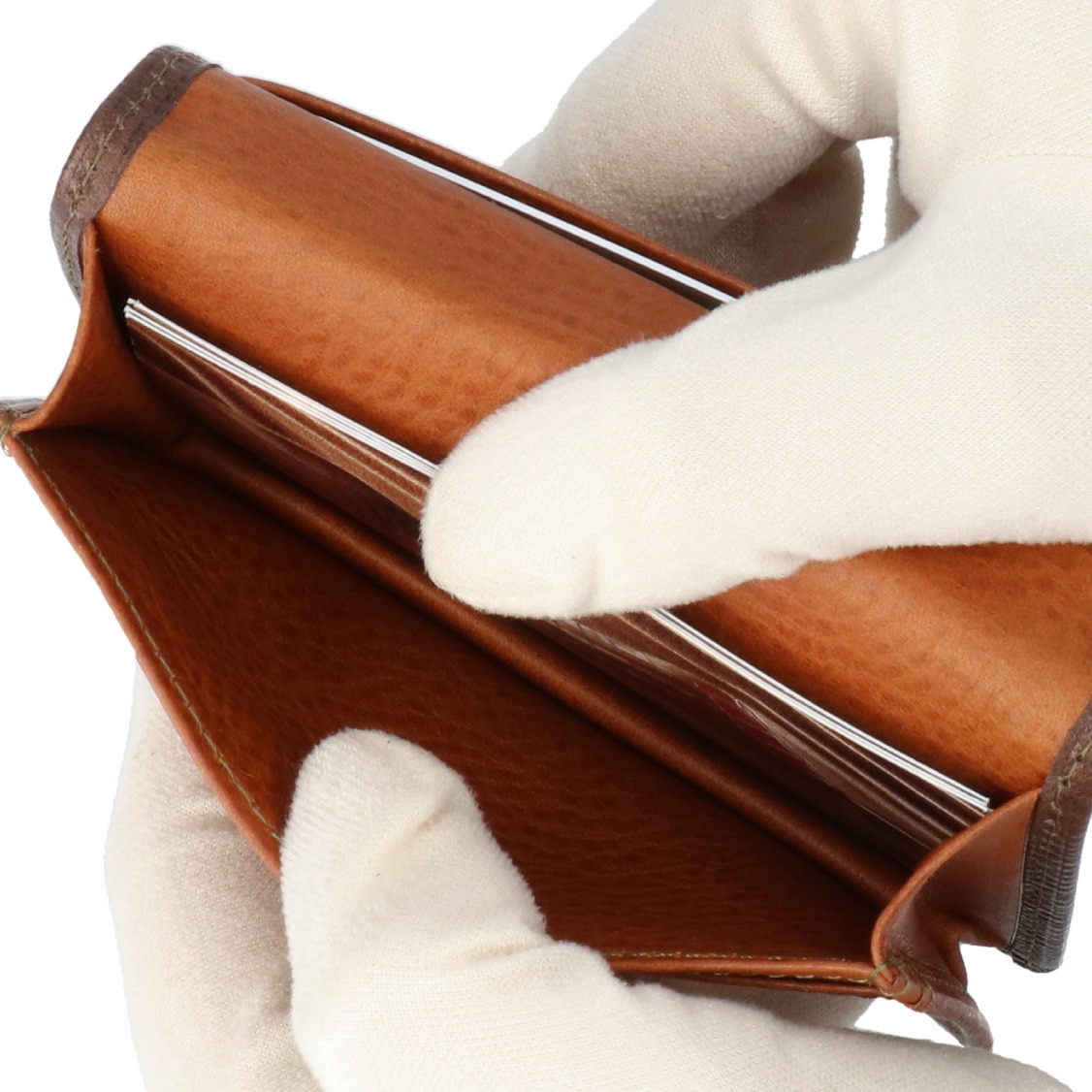 オールレザーで作られた革の風合いを楽しめる名刺入れです。マチは通しマチと呼ばれるデザインを採用しており、ボックス形になるのが特徴です。この部分の作りは、日本では流派の違いにより、ボックス型の通しマチとV字型のササマチと呼ばれる作り方に分かれた歴史があります。ボックス型の通しマチはクラシカルな伝統を感じさせる風合いが魅力です。