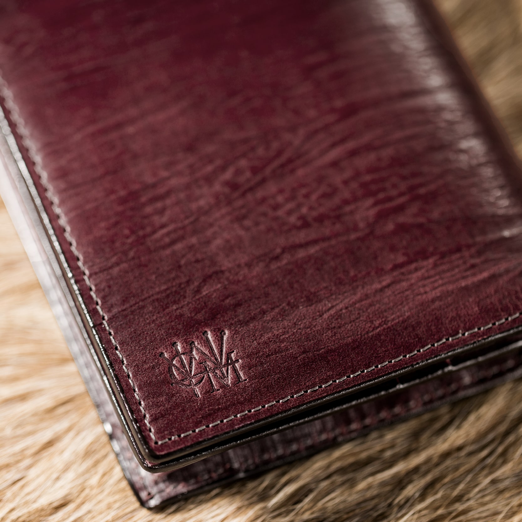 ボルドーの深い色味が特徴的。赤ワインの透き通る濃厚感をレザーで実現しています。ワイン樽と同じく、オークの木と混ぜて染色しており、とても深く芳醇な赤ワイン色を堪能出来ます。不気味に燃える森をイメージした色味。