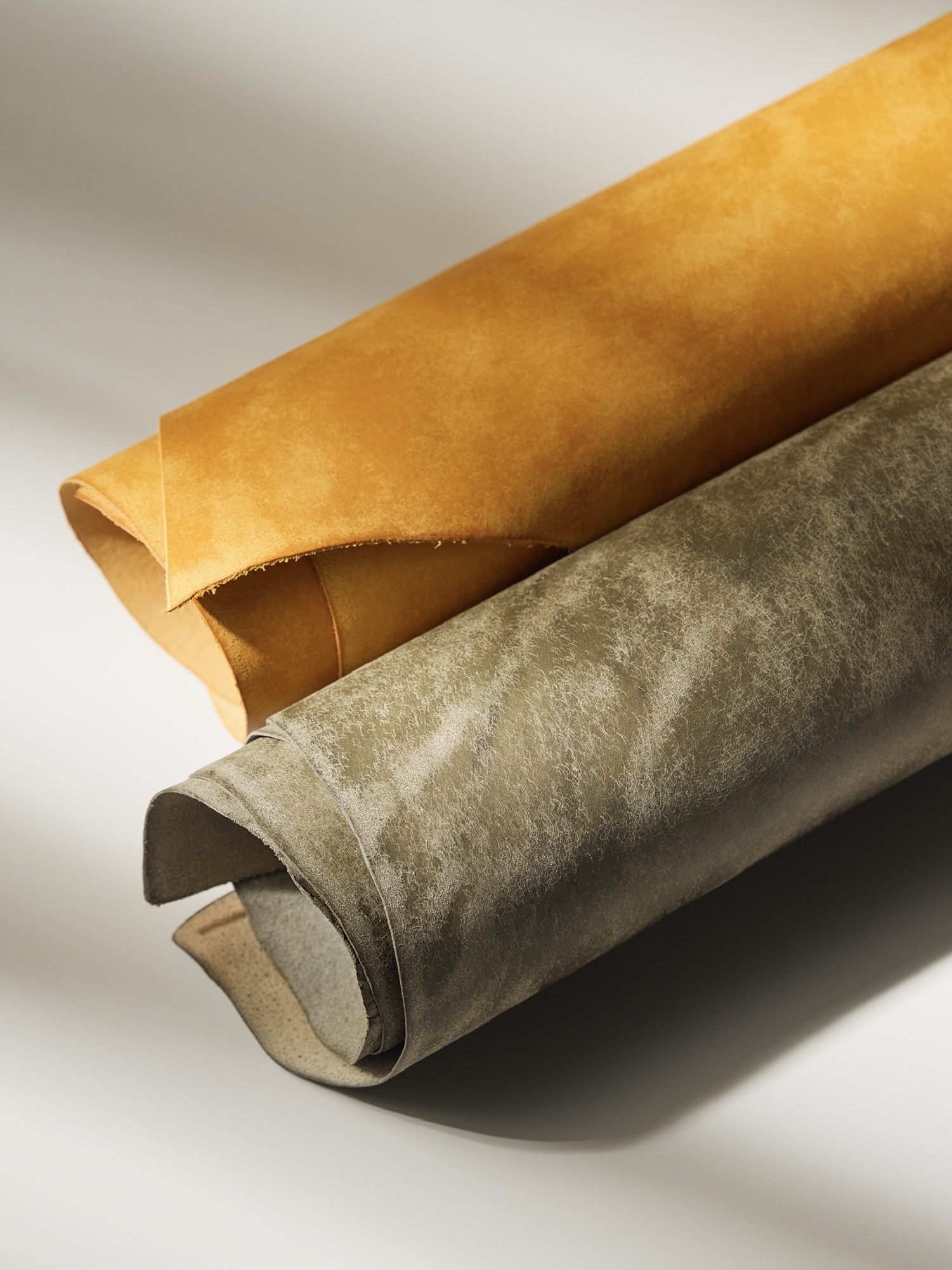イタリア千年の歴史を持つ伝統製法により作られたバケッタレザーに、表面を毛羽立たせる加工を施す事で、和紙の様な風合いと、ややヴィンテージな風合いを楽しめるレザーに仕上げられています。表面は起毛しているにも関わらず、サラサラした質感でオールシーズン使えます。