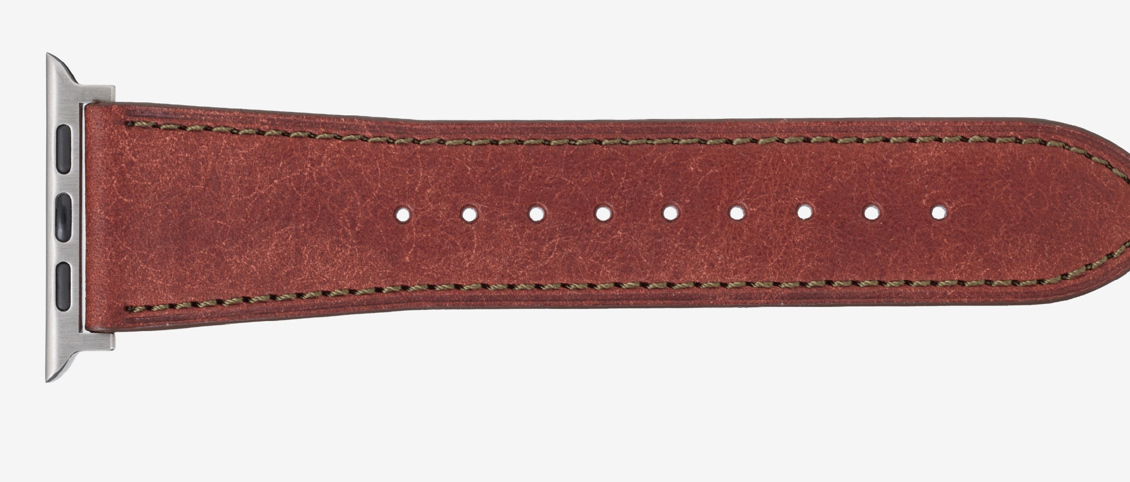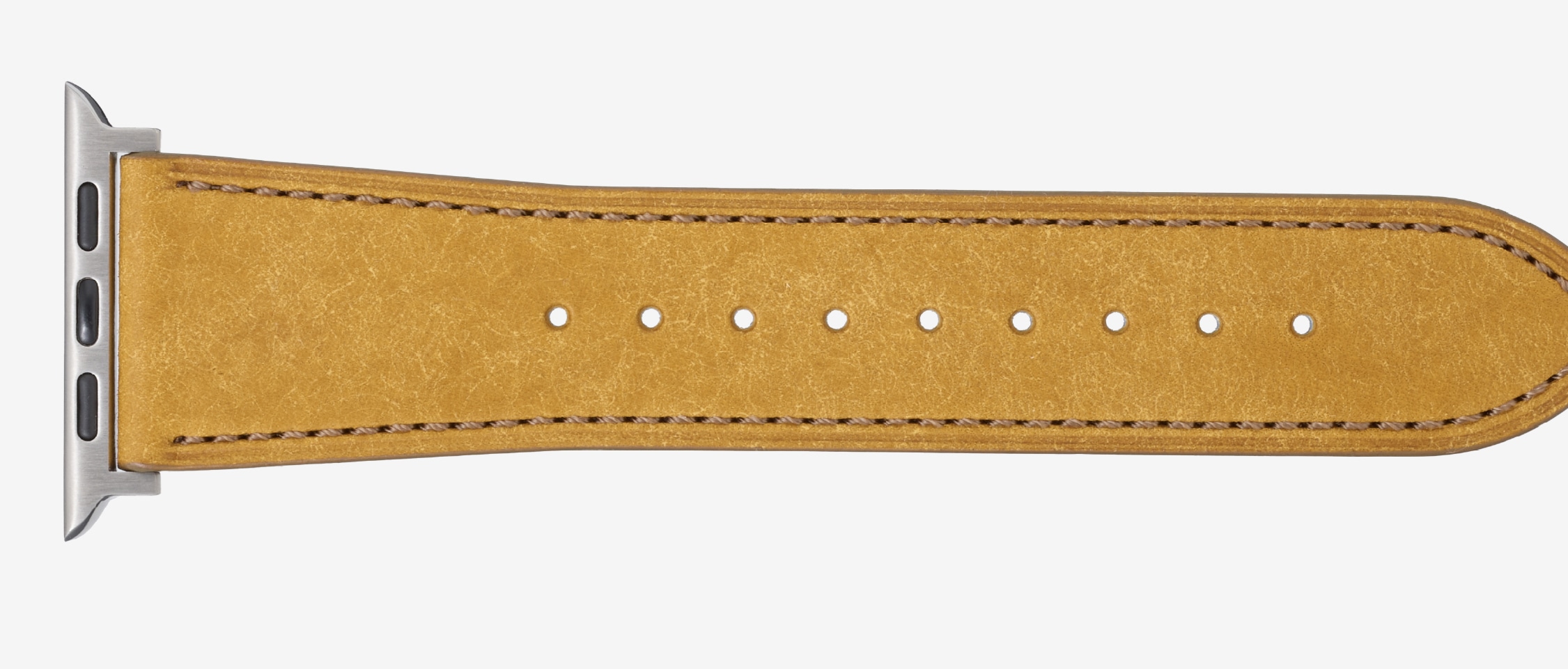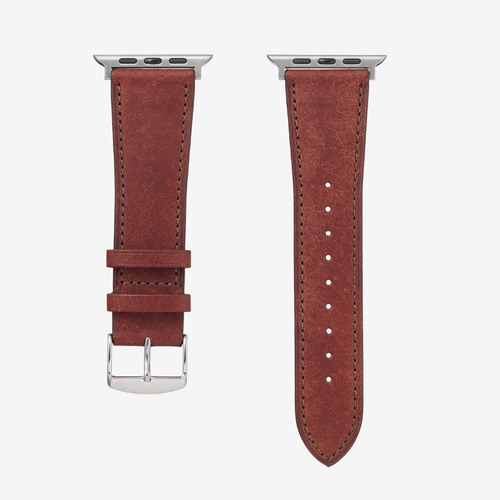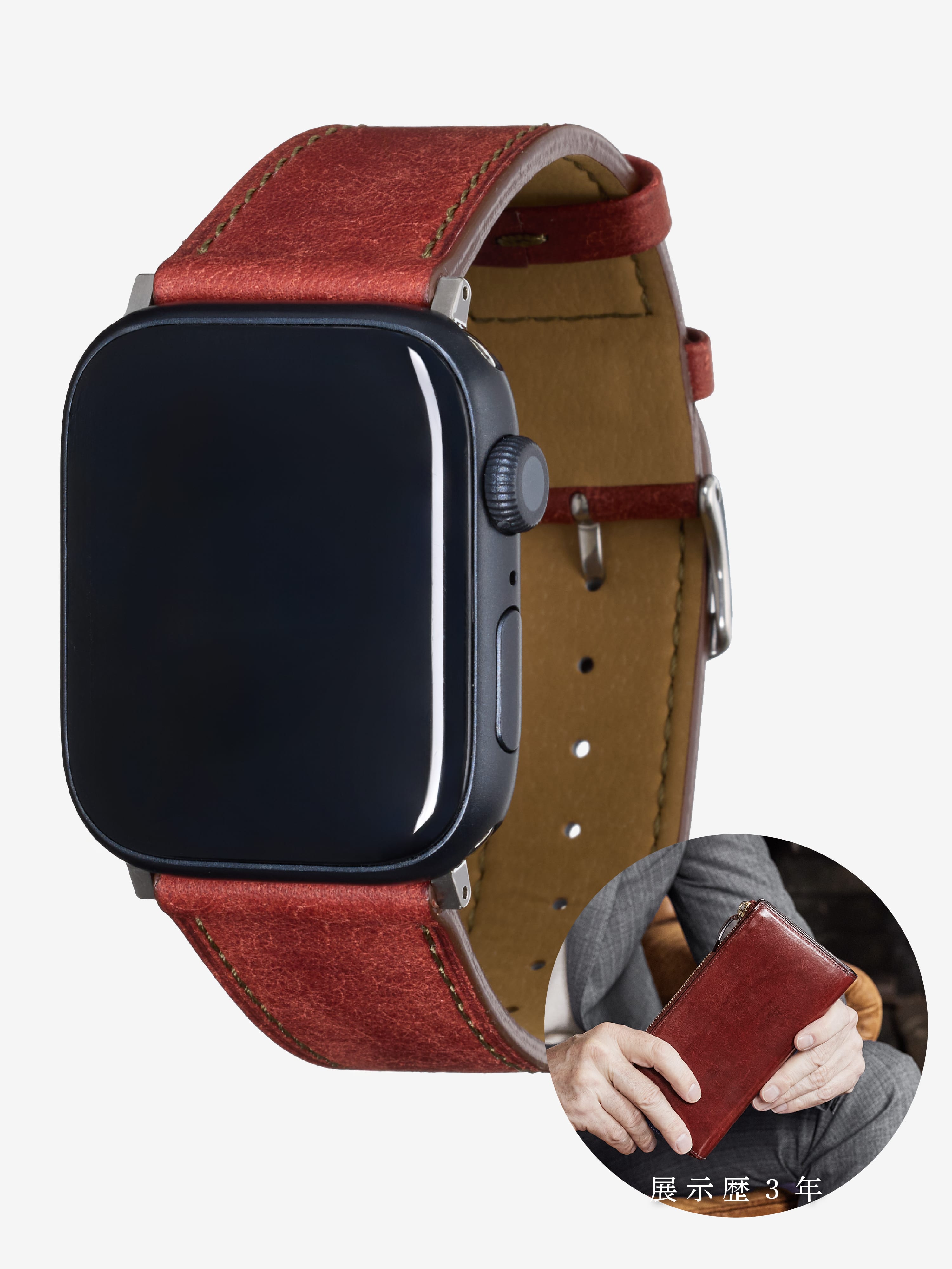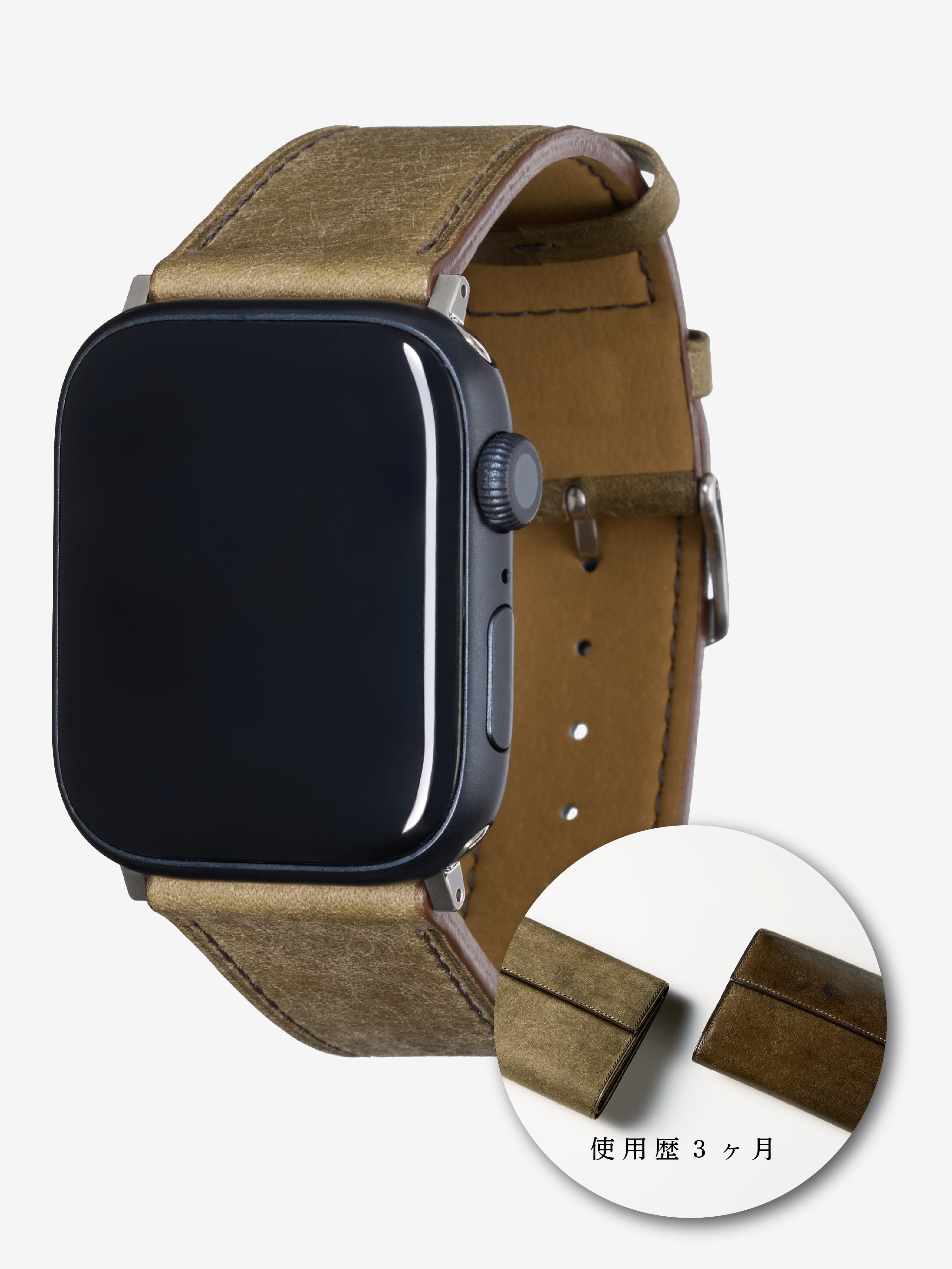 時計バンド製作に精通した日本の熟練職人が、Apple Watchのために丁寧に仕立てた本格レザーバンド。力強さとしなやかさを兼ね備え、使うほど光沢と深みが増すエイジングが魅力。毎日腕に触れるものだからこそ、最高の品質を届けます。
