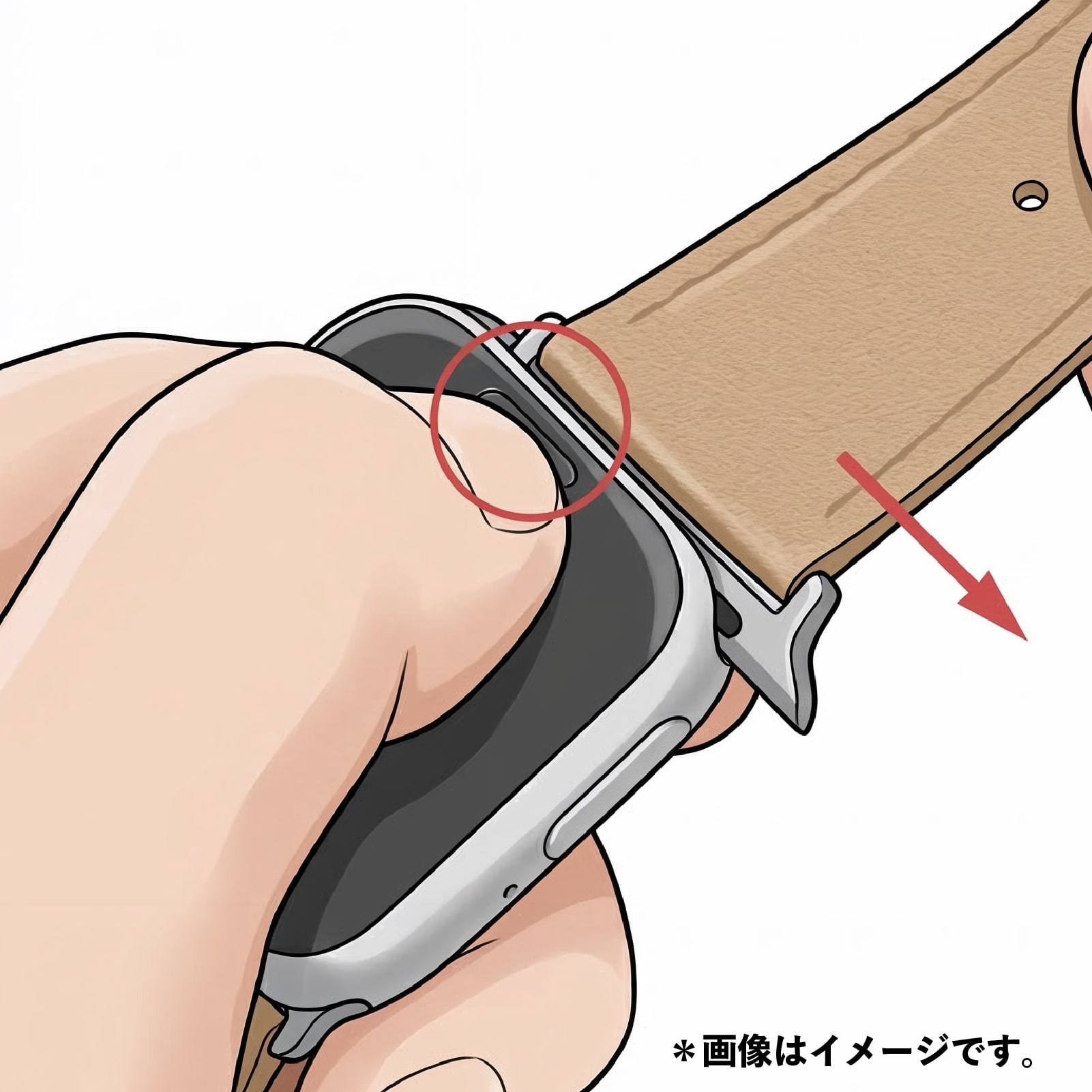Detail 03本体裏側の取り外しボタンを押しながら、バンドを横方向にスライドさせてください。無理な力を加えず、まっすぐ引き抜くのがコツです。