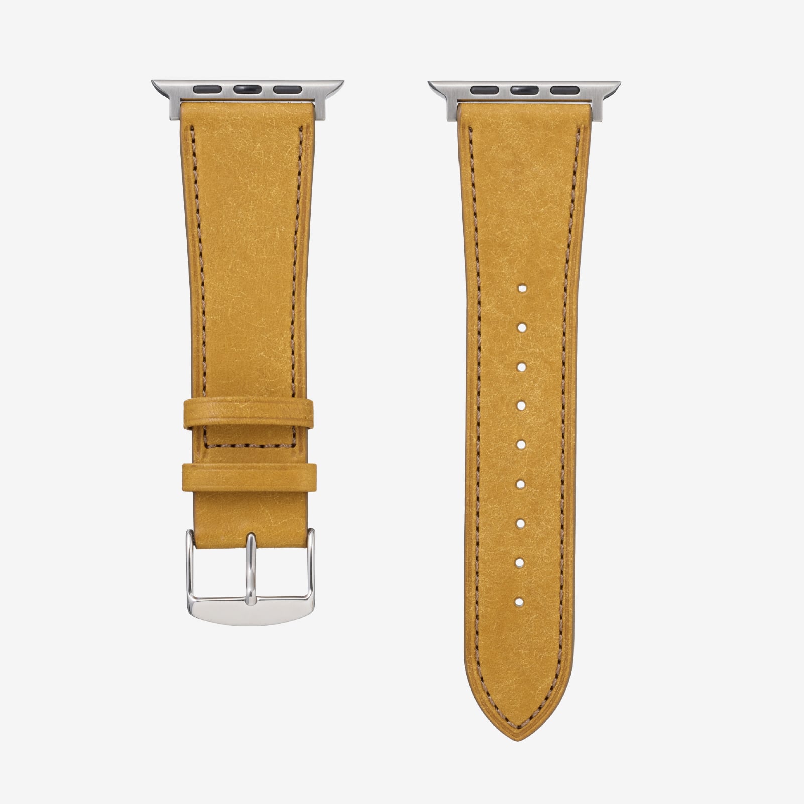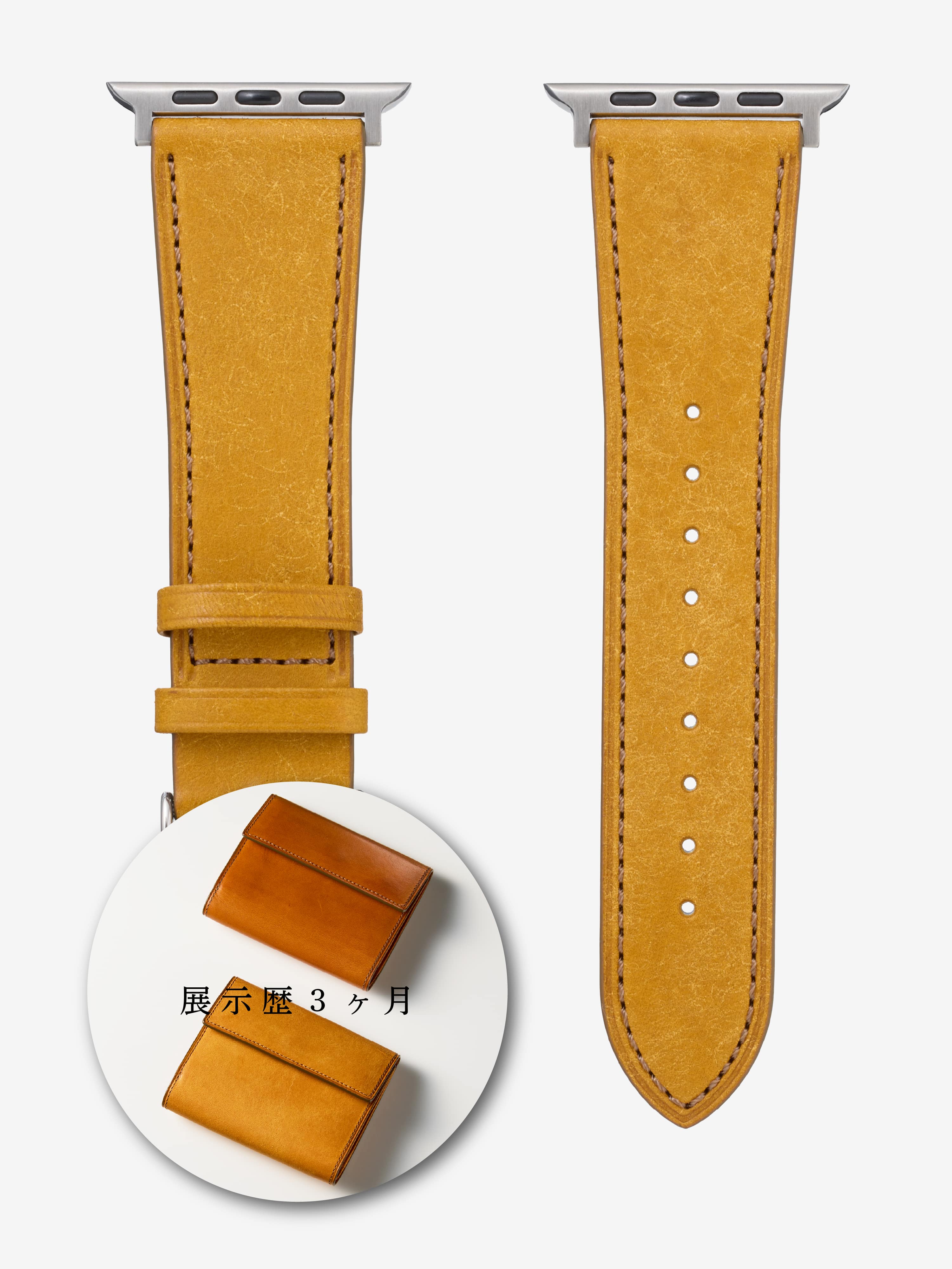 陽気なイタリアンイエローが魅力の“ナポリ”。イタリア革文化を象徴する発色の良さと、劇的なエイジングが楽しめるカラーです。Apple Watchとの組み合わせで存在感が際立ち、使い込むことで黒に近い色味まで深まり、鮮烈な輝きを放つ個性を持ち続けます。革好きを魅了し続ける、変化の幅が大きい色味です。