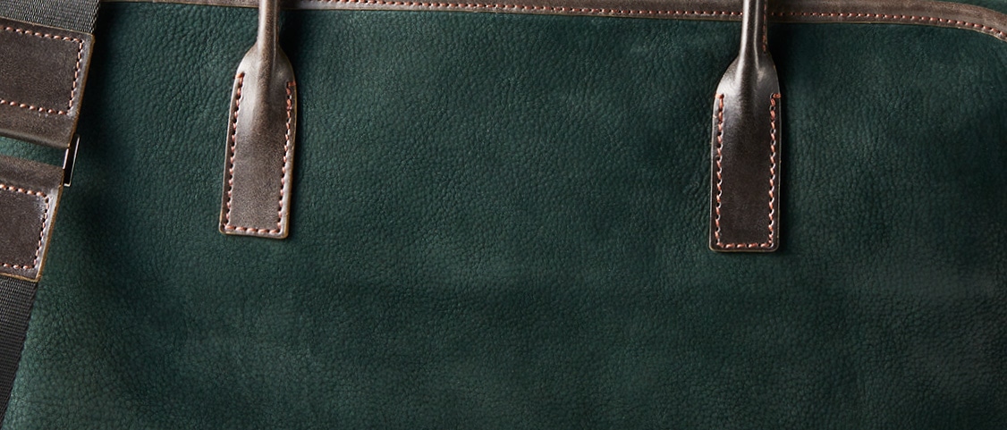 紀元前ルーツの英国産オークバークを持ち手と外枠に使用し、本体にはスペイン原皮のヌバックを採用しました。ラグジュアリーホテルのプールサイドにある、大判なタオルはいつも心地よく水気を吸収してくれます。そこからインスピレーションしたのが、このクラシカルボストンです。タオルの様に水気は吸収しませんが、質感の心地よさは別格です。