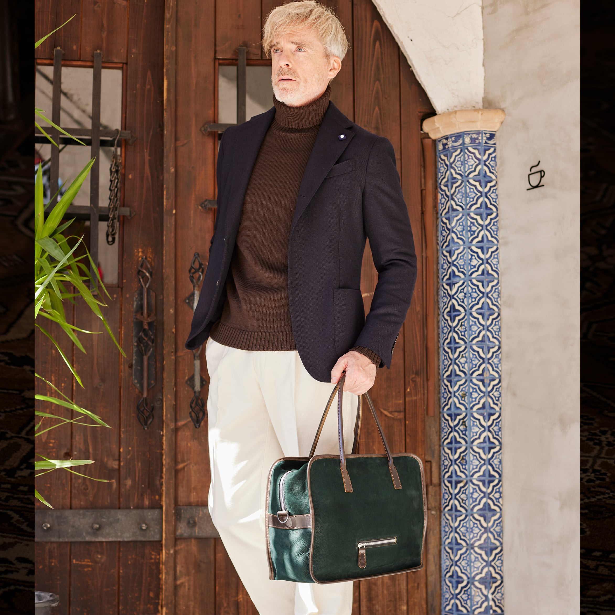 オーセンティックカラーは、少しフォーマルなシーンで使うのも似合います。天然皮革ですので、太陽光に当たればよりリゾートに、屋内に入れば、フォーマル感を増す、表情が変化するのが魅力です。経年変化も一番感じられる色味ですので、使うことでの変化を楽しみながら、気軽にレザーを楽しめます。
