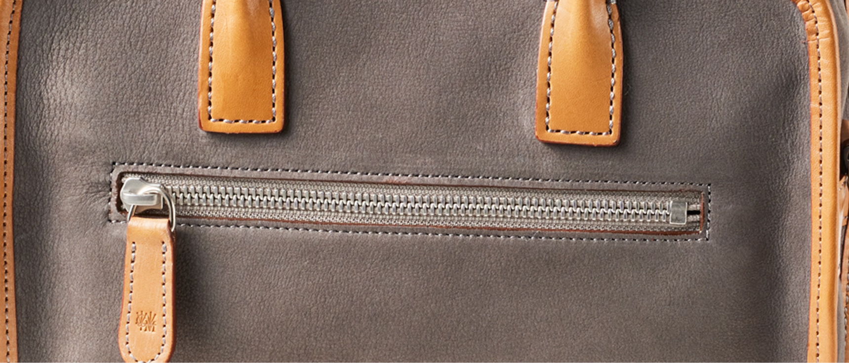Detail 06滑らかなファスナーで開け閉めします。ヌバックは柔らかく、間口は大きく開きますので、取り出し易いのも魅力です。