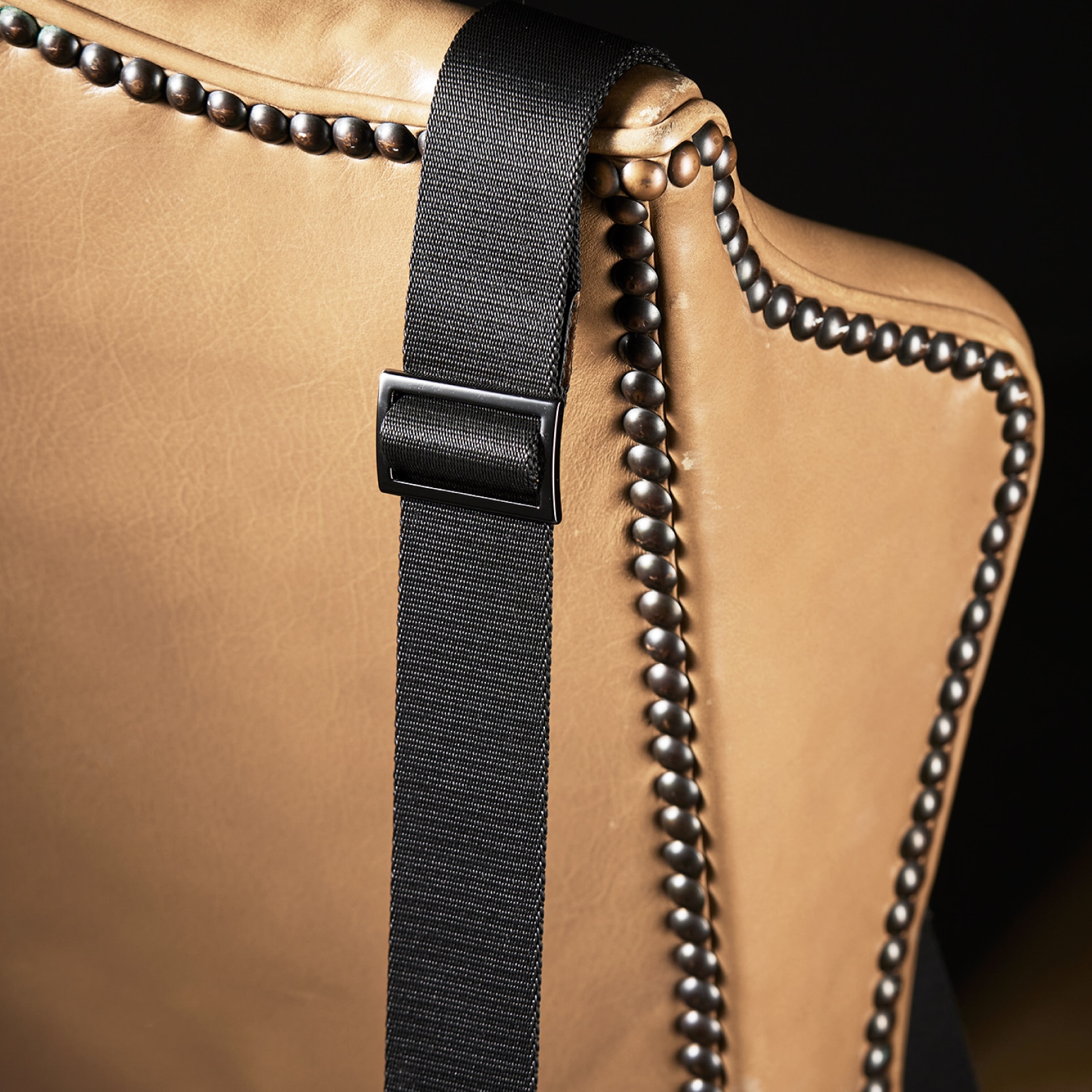 ショルダーベルトを太めにすることで1日持ち運んでも疲れにくい。気兼ねなく遊ぶことが出来るミニバッグです。ショルダーベルトは黒色、使用している革も黒、金具も黒にすることで、大人に似合うしっかり感を実現しました。