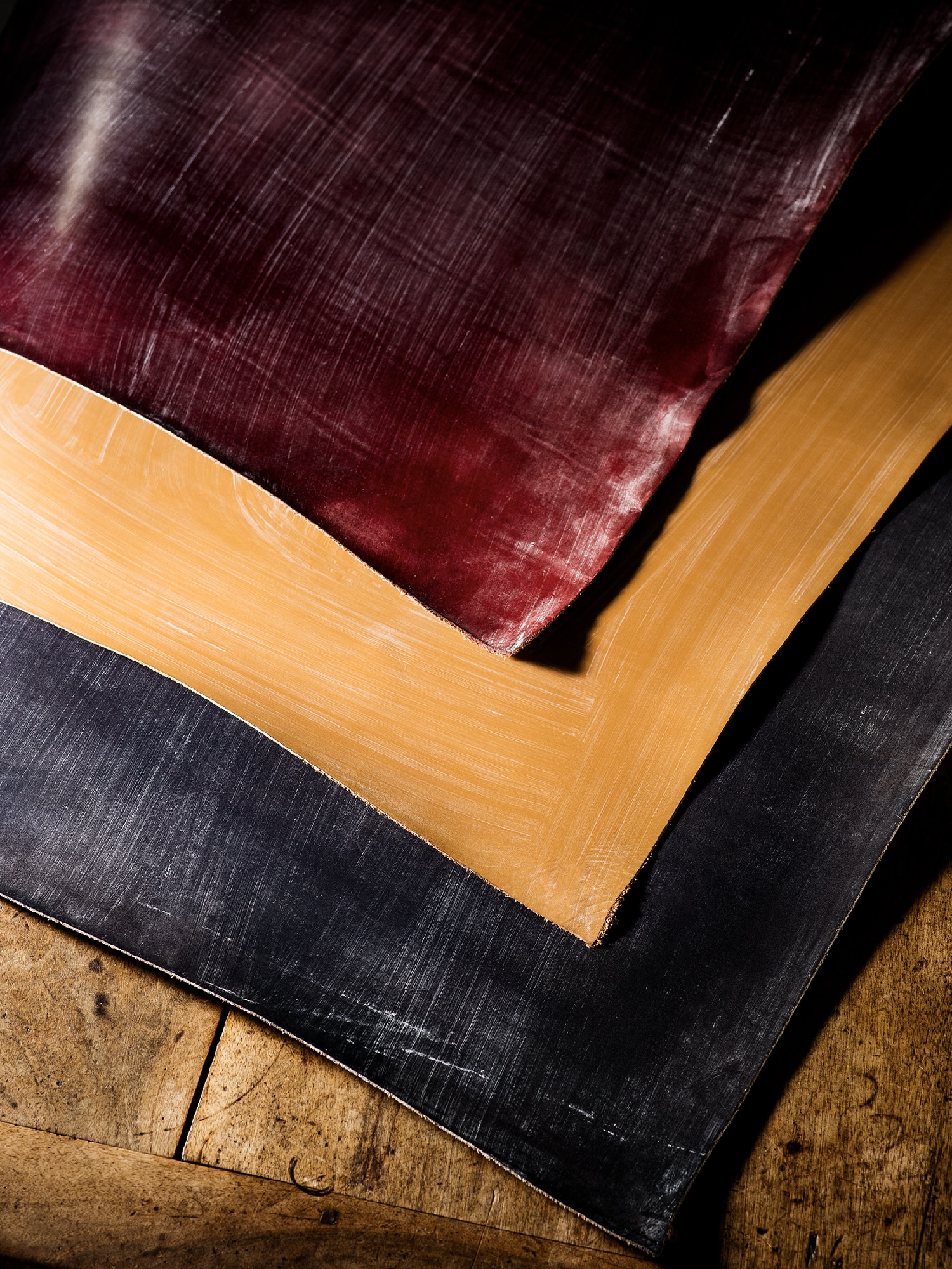 生後18ヶ月のBULLの原皮を使用しています。BULLは雄牛で美しくしなやかな質感に仕上がるのが魅力です。クロム鞣し、染料仕上げ、ヌバック加工に独自の加工を施しており、ヌバックは使用することで経年変化が起こる様に仕上げられています。それでいて、革のハリ感は長く保たれます。
