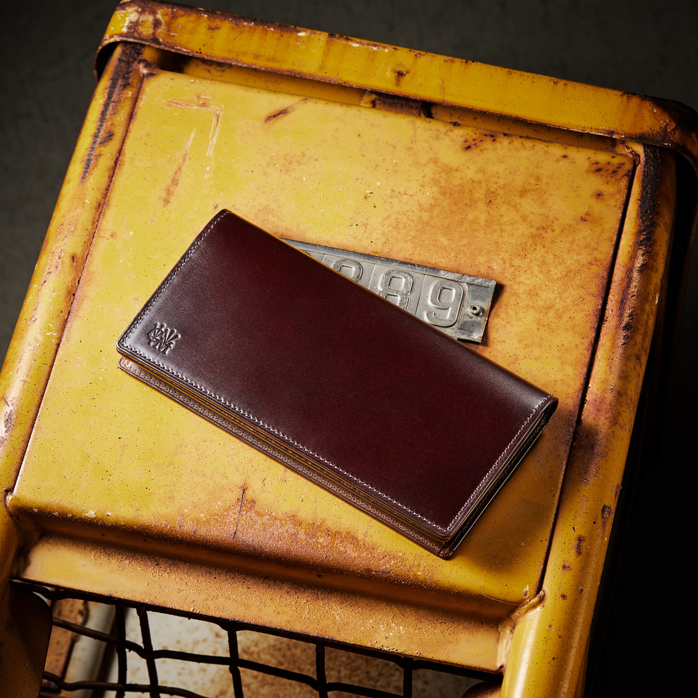 長財布と言えばクラシカルなこの形。通しマチと呼ばれる製法により作られた長財布です。外装最高級のコードバンと内装も最高級のオイルレザーを組み合わせた、贅沢な長財布です。トラディショナルなスタイルの紳士や、昔ながらのお洒落を楽しむクラシカルタイプの男性に似合う形です。細かいところまで丁寧に、そして贅沢に仕立てました。