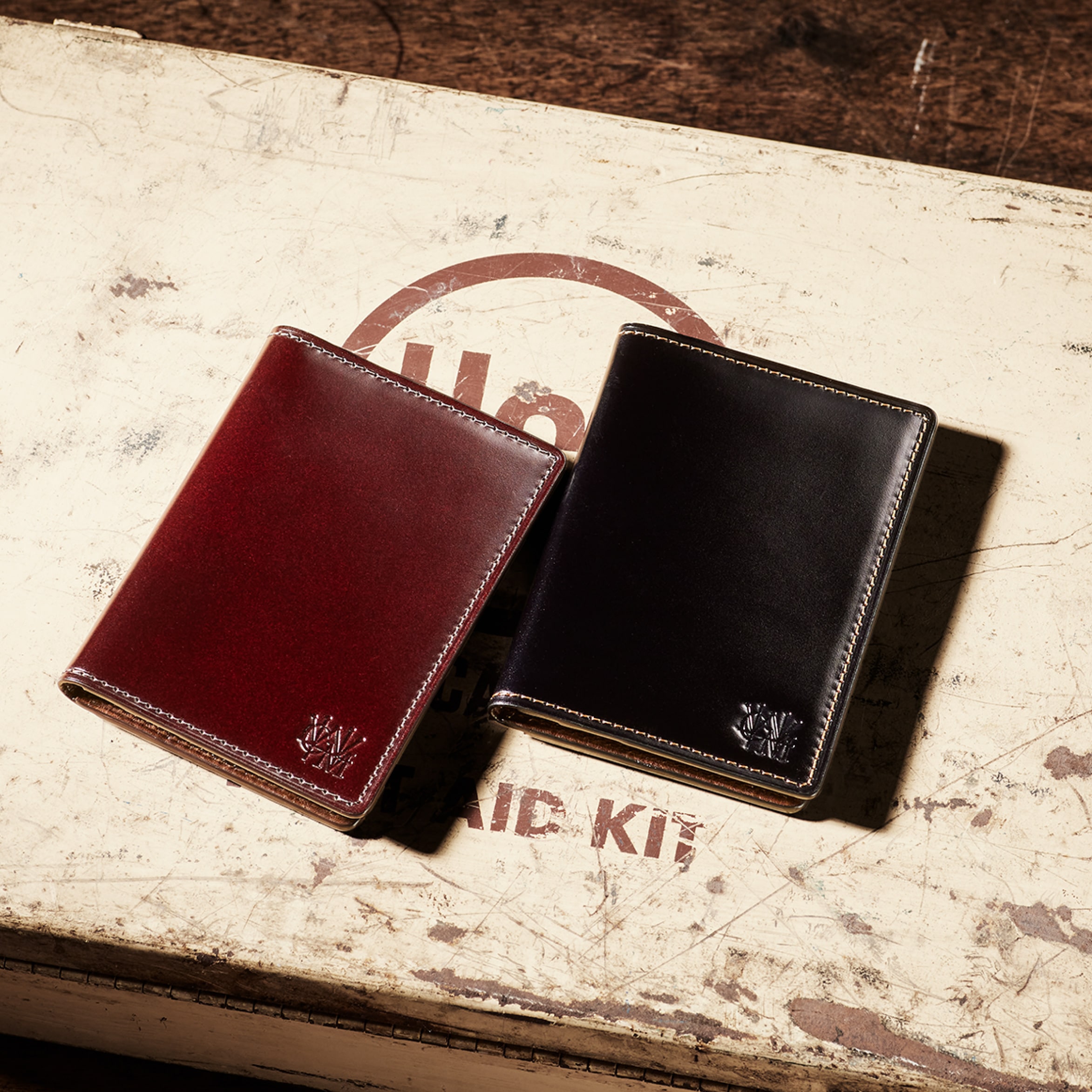 日本文化が生み出した水染めコードバンです。植物タンニン100%で鞣した後に、アニリン染めと呼ばれる染色により、透明感があり革の風合いもしっかりと生かした製法により製作されたコードバンです。