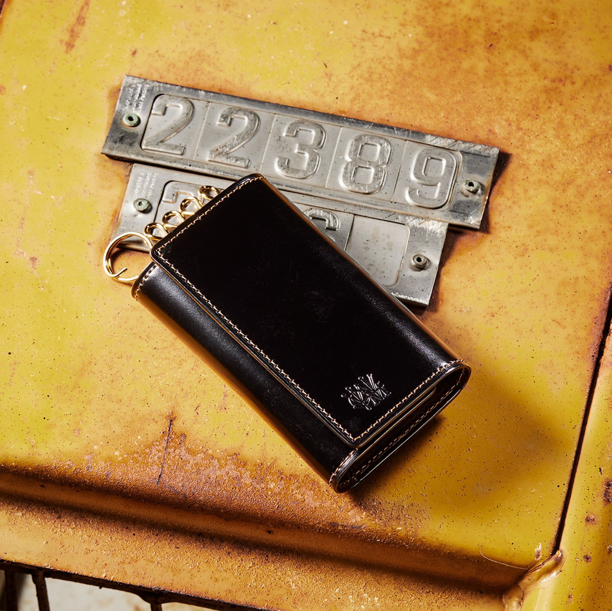 最高級のコードバンの曲線美が美しいキーケース。背面にはカードポケットがついておりクレジットカードや電子マネーを収納することが出来るのも魅力です。クラシカルなデザインのキーケースでシンプルで上品さがあり、お洒落な雰囲気も醸し出しています。