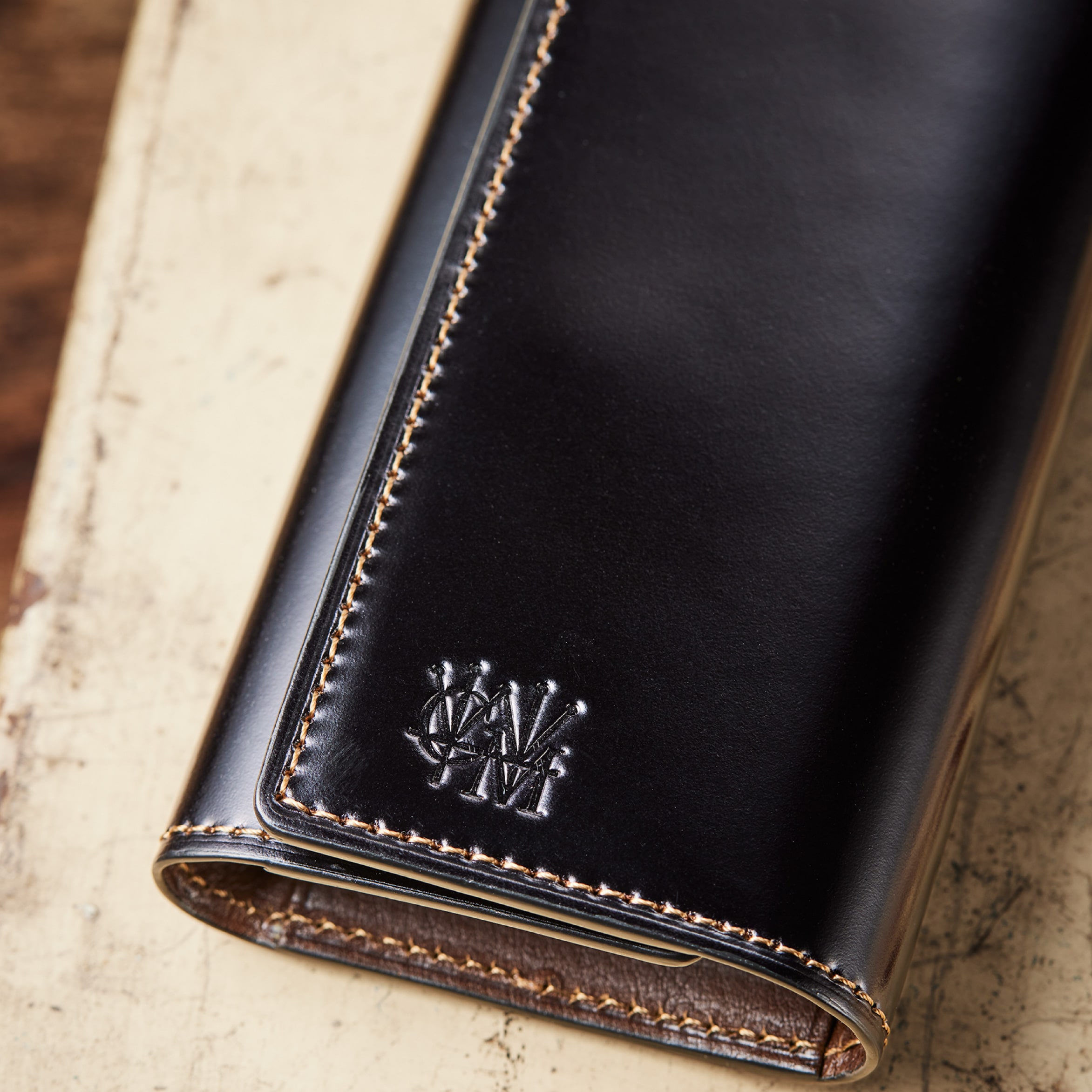 日本文化が生み出した水染めコードバンです。植物タンニン100%で鞣した後に、アニリン染めと呼ばれる染色により、透明感があり革の風合いもしっかりと生かした製法により製作されたコードバンです。