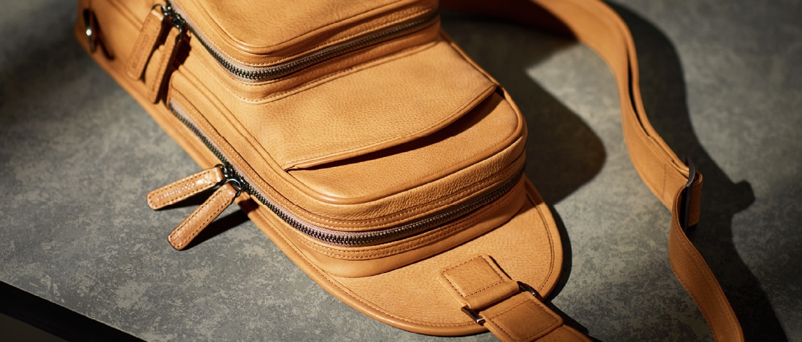 革本来の自然な風合いを際立たせ、本革の持つ重厚感をさり気なく引き立ててくれます。軽量でありながらも滑らかさと堅牢さを兼ね備えた生地は、濡れても乾きやすく、汚れにも強いのが特徴です。