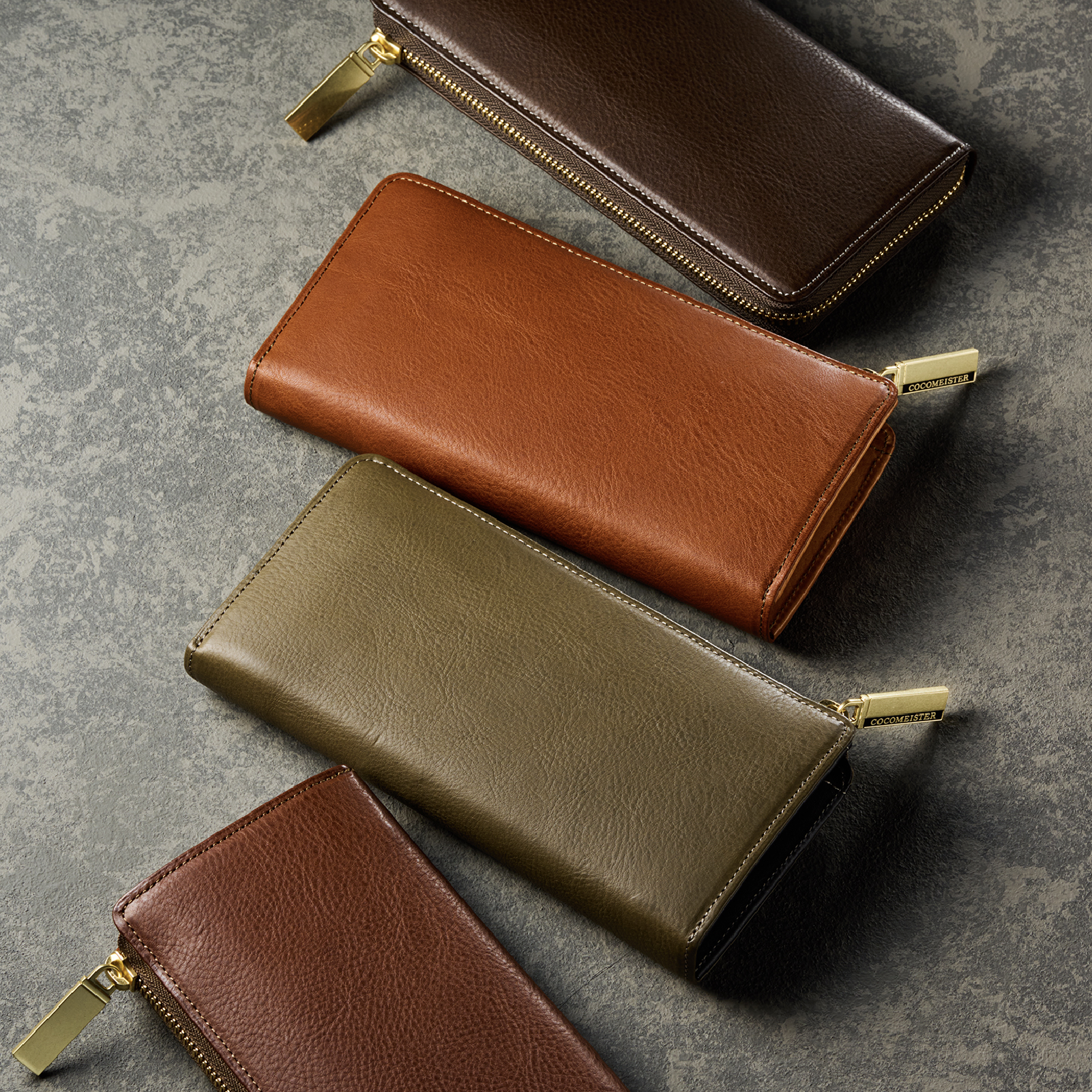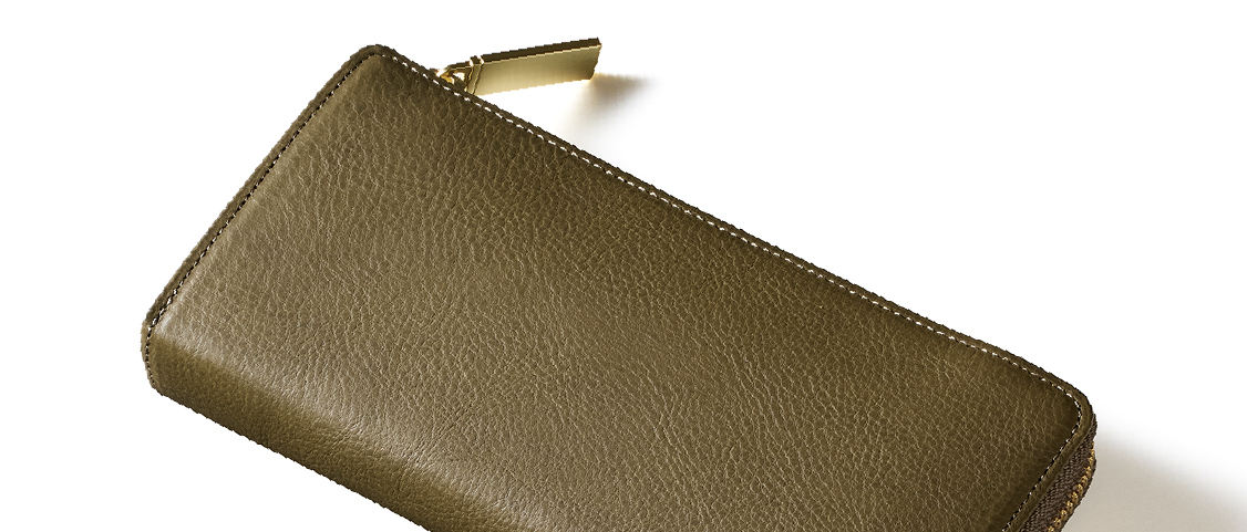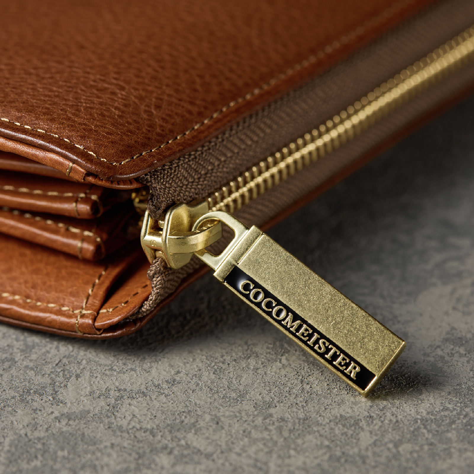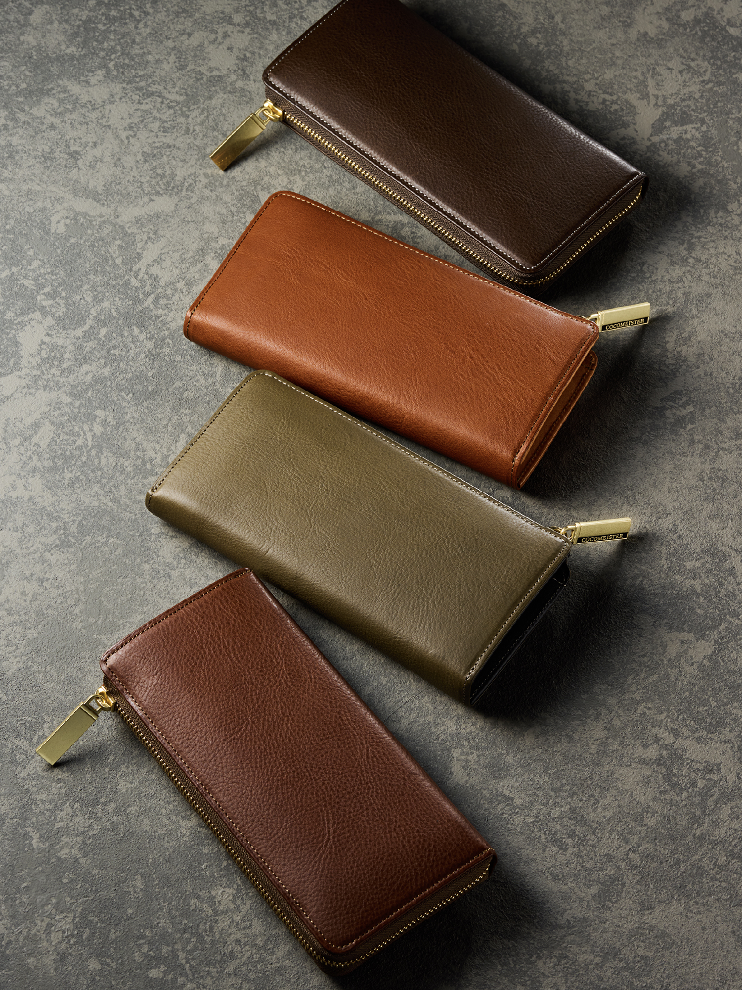 L字ファスナーは軽快に開閉し、蛇腹マチがしっかりと広がる設計により、中身の視認性が非常に高くなるよう作られています。中央の小銭入れは開口が広く、小銭が探しやすい構造。カード段は深さと角度を整え、抜き差しが自然に行えるように調整しています。フリーポケットも複数備え、紙類をすっきり整理できるのも魅力です。シンプルな中に職人の技術と誠実さが詰まった仕立てです。