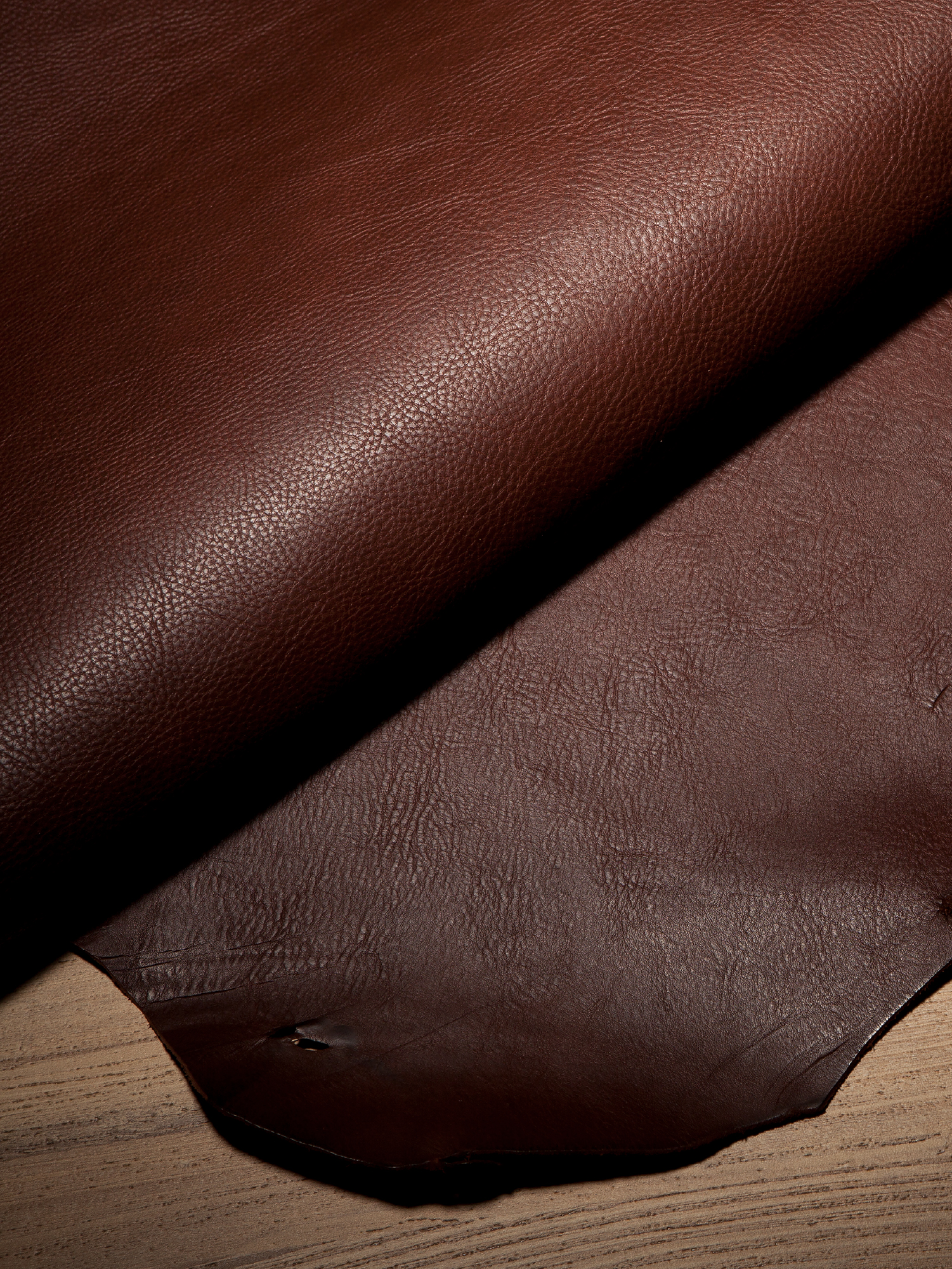 経年変化も圧巻です。植物タンニン鞣し×染料仕上げだからこそ、使うほどに色が深まり、艶が増し、濃淡が豊かに育っていきます。シボの凹凸による陰影が際立ち、革がまとう雰囲気そのものが変化していく姿は、まさに“育つ革”の醍醐味。手の油、光、摩擦など、日々の動作すべてが革の表情に刻まれていきます。
