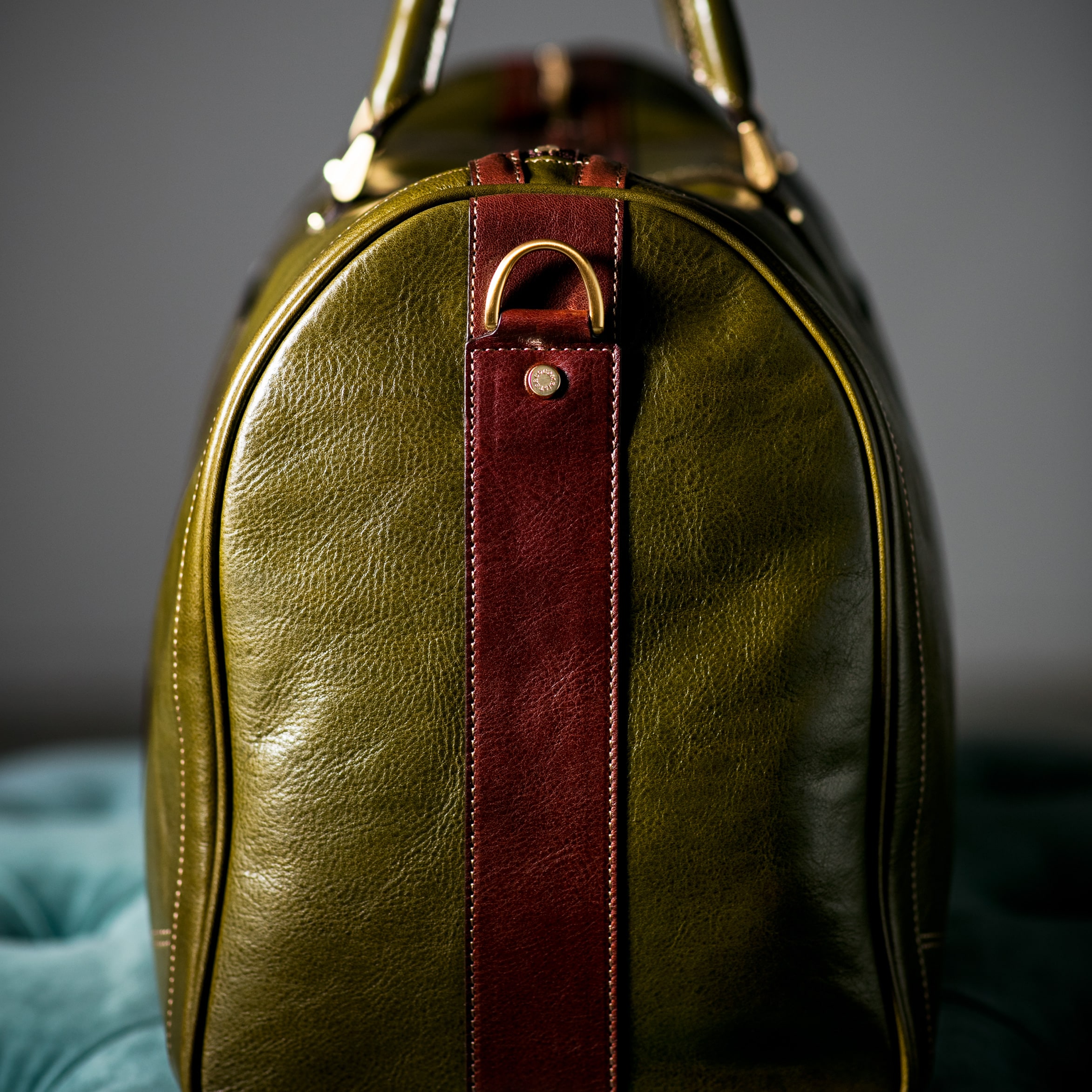 革好きを魅了するイタリア皮革マットーネを贅沢に使用したボストンバッグ。1泊2日程度の出張から、ゴルフでの使用をイメージしたボストンバッグ。イタリア皮革を全面に使用し、経年変化を楽しむことが出来る鞄である。内装はスエードレザーで、ゴルフ場の格式高い風格とも良く合う、革好きのボストンバッグ。