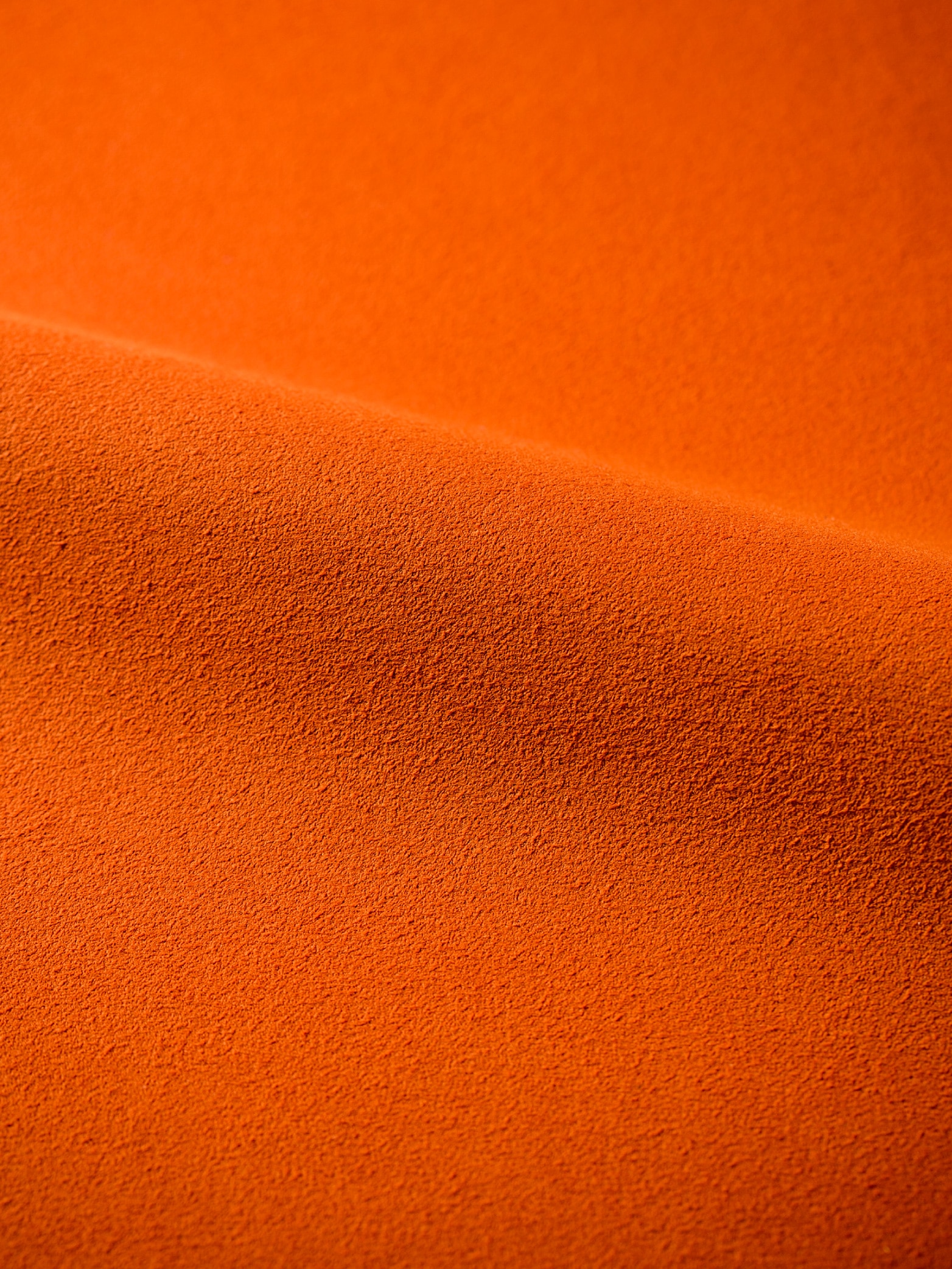 柔らかで産毛のようにしっとりと手になじむ、スエード特有の質感が特徴的。シワになりにくく、高い耐久性を兼ね備えていながら、重量は軽い、日本の高い技術力により生み出された素材です。その為、製造コストが高く、使われるシーンは高級自動車・クルーザー・飛行機などに限られて来ました