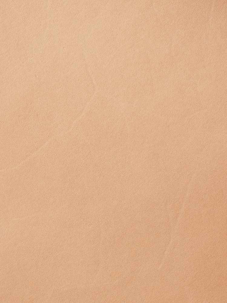 イタリア千年の歴史を持つ伝統製法により作られたバケッタ革に、卵白を原料としたガゼインと呼ばれるものにより加工し、艶出しを施します。それにより、艶のある風合いを楽しむことが出来ます。シボ感は控えめで、スムースレザーに近い、ツルツルとした質感が心地よく感じます。