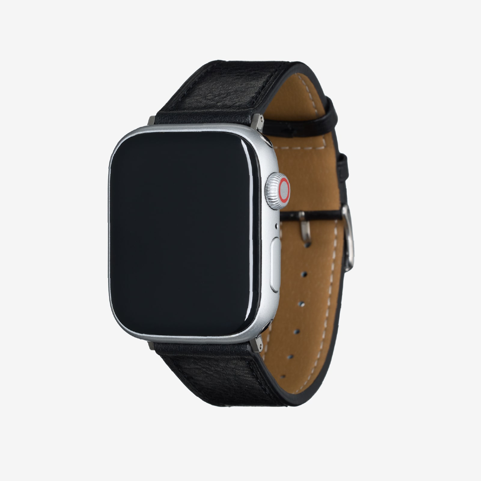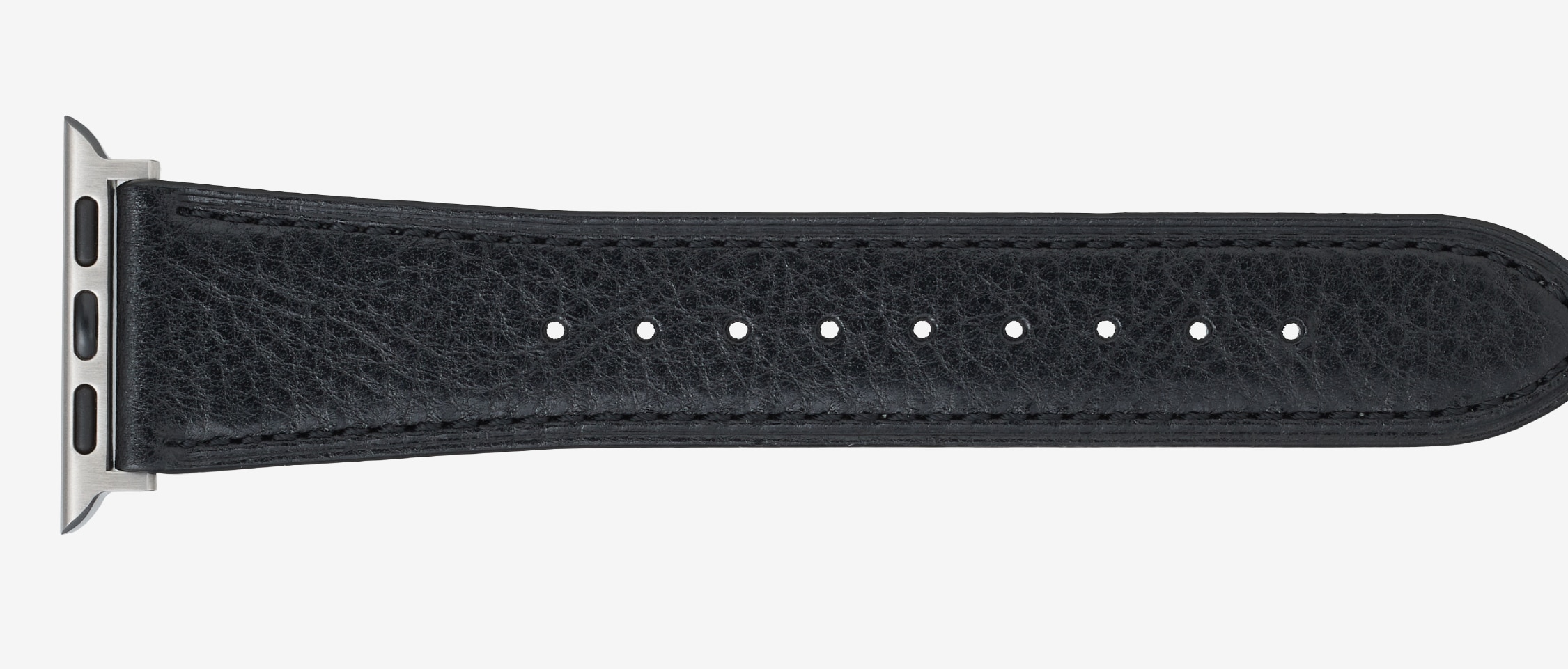 80年代のレトロを感じさせる、味わい深いブラック。イタリアらしい陽気さと品のある艶が同居し、Apple Watch の金属ケースと美しく調和します。使い込むほど柔らかさと光沢が増し、自分だけの黒へと育っていきます。