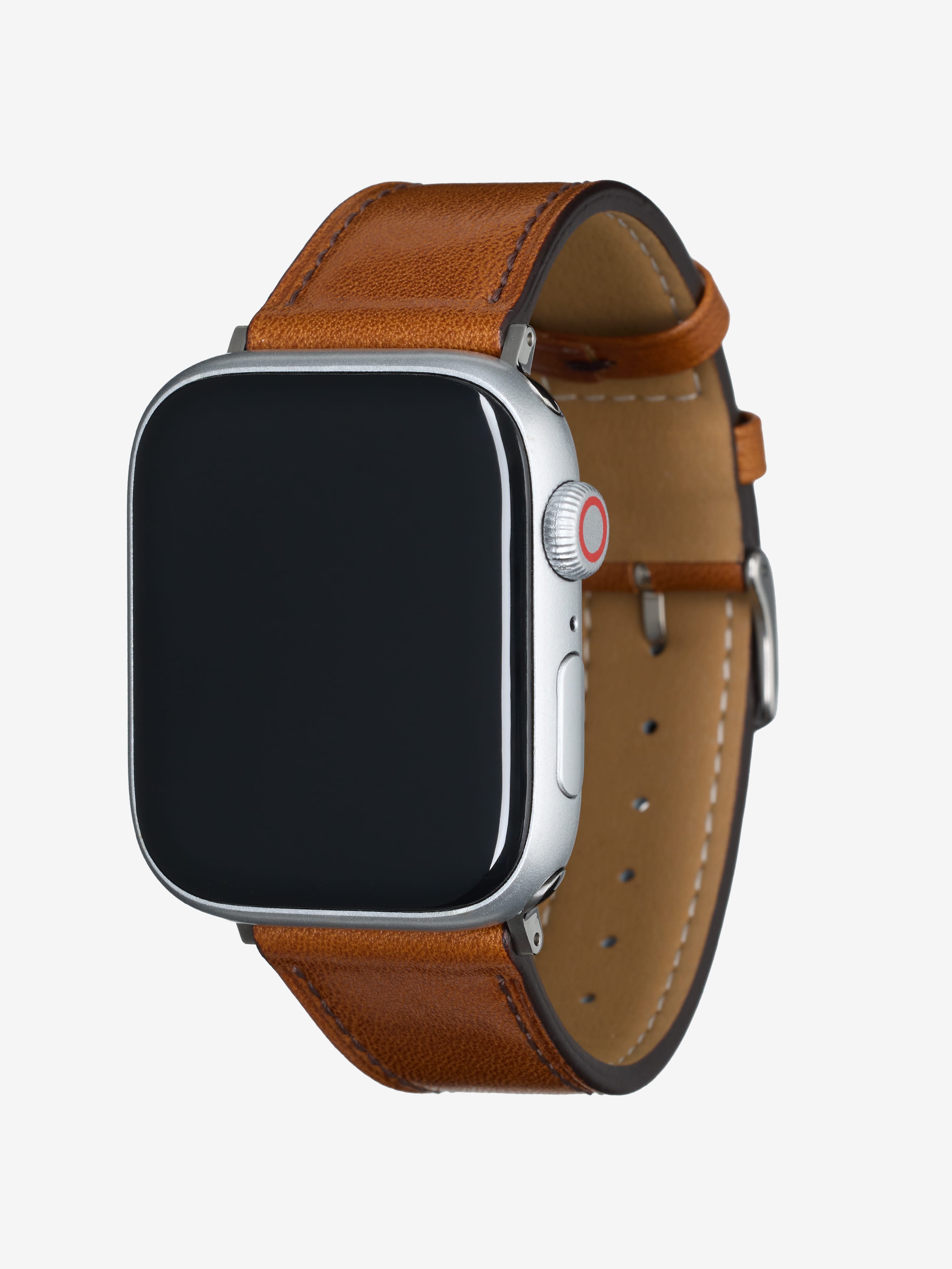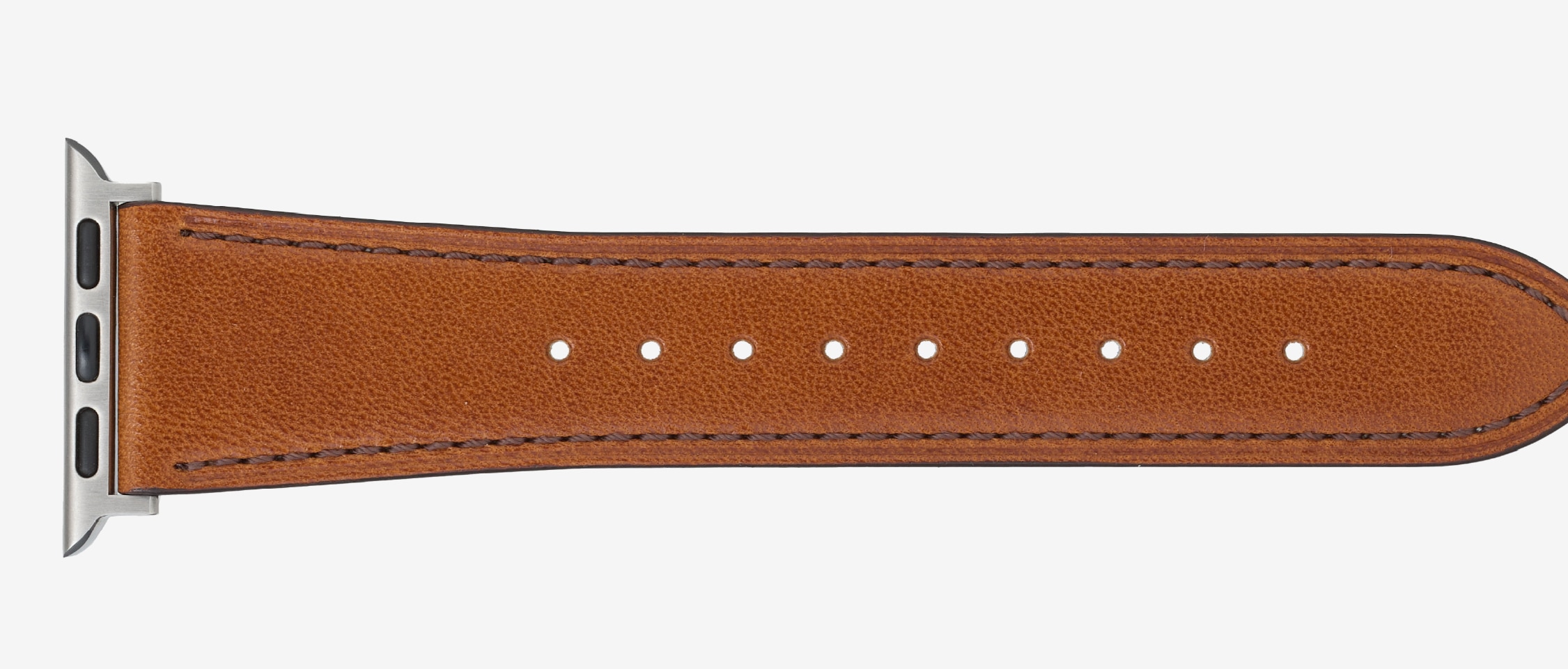革の醍醐味である経年変化を存分に味わえるブランデーカラー。明るい琥珀色から深い飴色へと表情を変え、Apple Watch バンドとして腕元を軽やかで温かみのある印象に。天然皮革らしい豊かな変化を楽しめます。