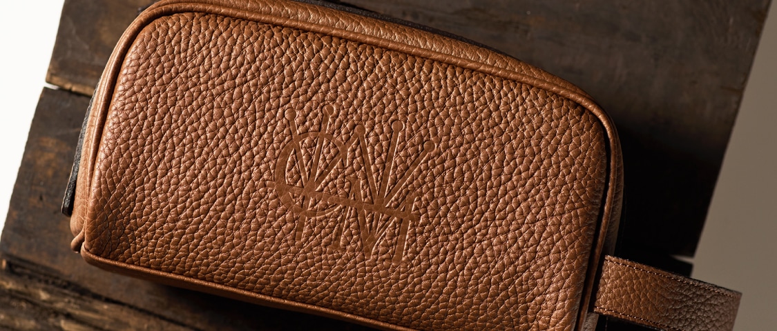 外装にココマイスターのロゴを素押しで刻印しています。素押しとは、シンプルに真鍮の金型で高音プレスによりロゴを浮き立たせています。薄めに刻印することで、ロゴをさりげなくお楽しみいただけます。