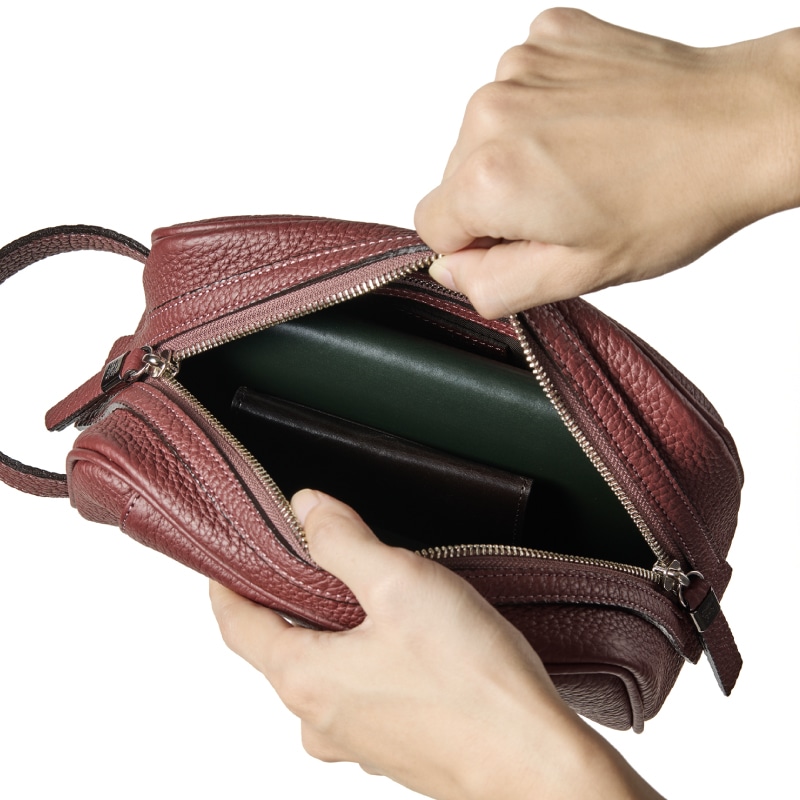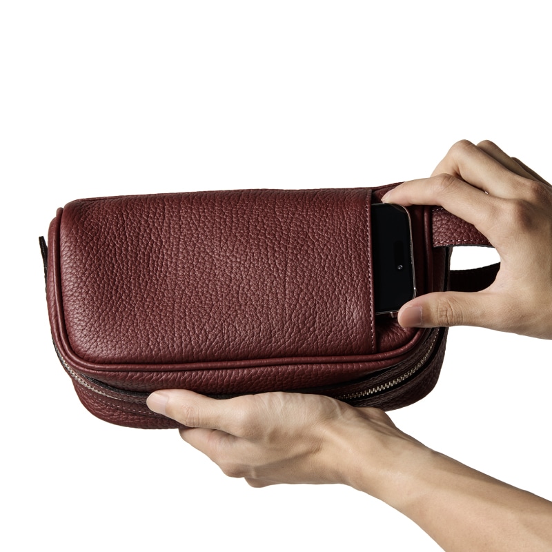 セカンド型ミニバッグで必要な要素は、手で持ち運ぶ時のレザーのフィット感。フランスシュリンクレザーの軽量さで、楽しく持ち運べます。