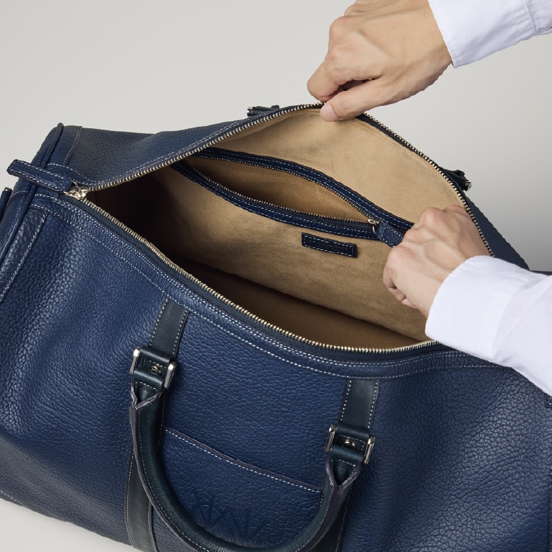 Detail 03皮革が柔らかいので、しっかり開いて入れ易い。内装もラグジュアリーで、荷物を優しく持ち運びます。