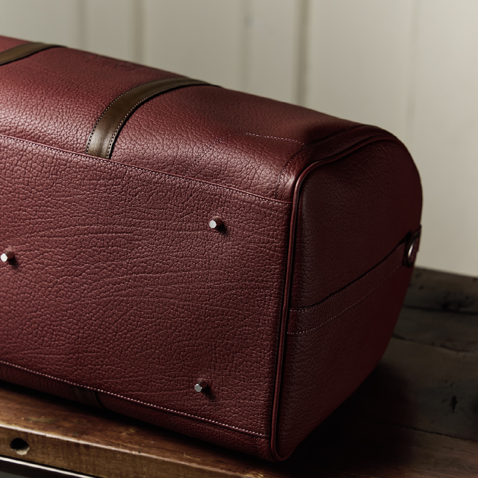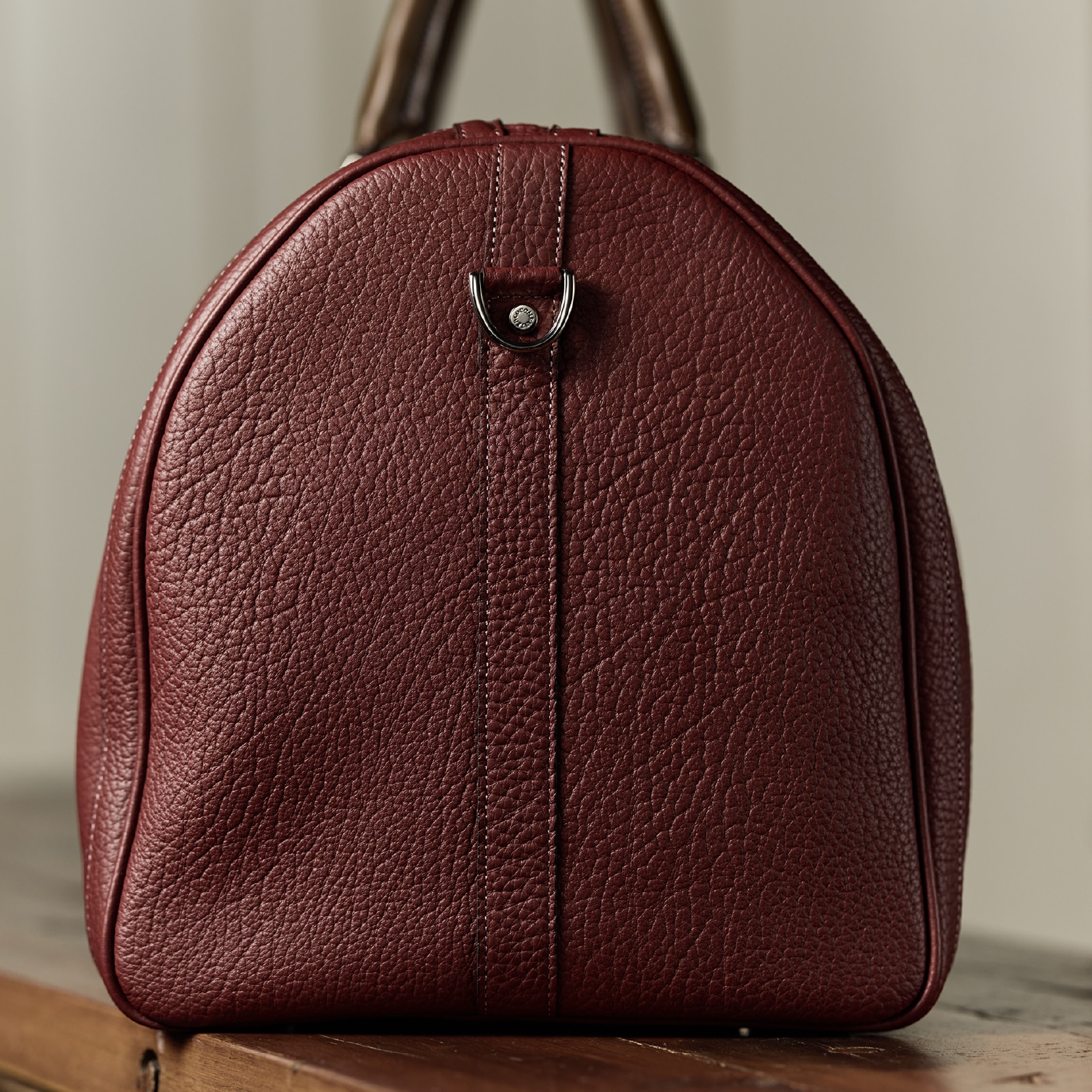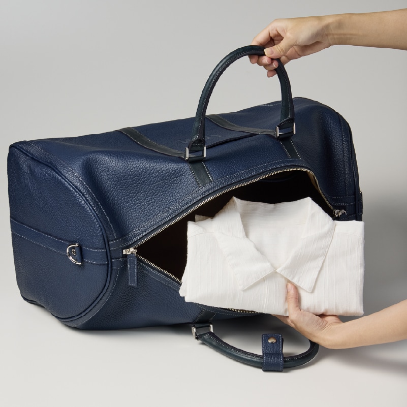 フランスシュリンクレザーを全面に使用し、上質感と軽量さで魅了するボストンバッグ。2泊3日程度の出張から、ゴルフでの使用をイメージしたボストンバッグ。持ち手にはマルティーニレザーを使用していますので、経年変化も楽しむことが出来ます。内装はスエードレザーを使用しており、肌触りと優雅さが魅力のバッグです。