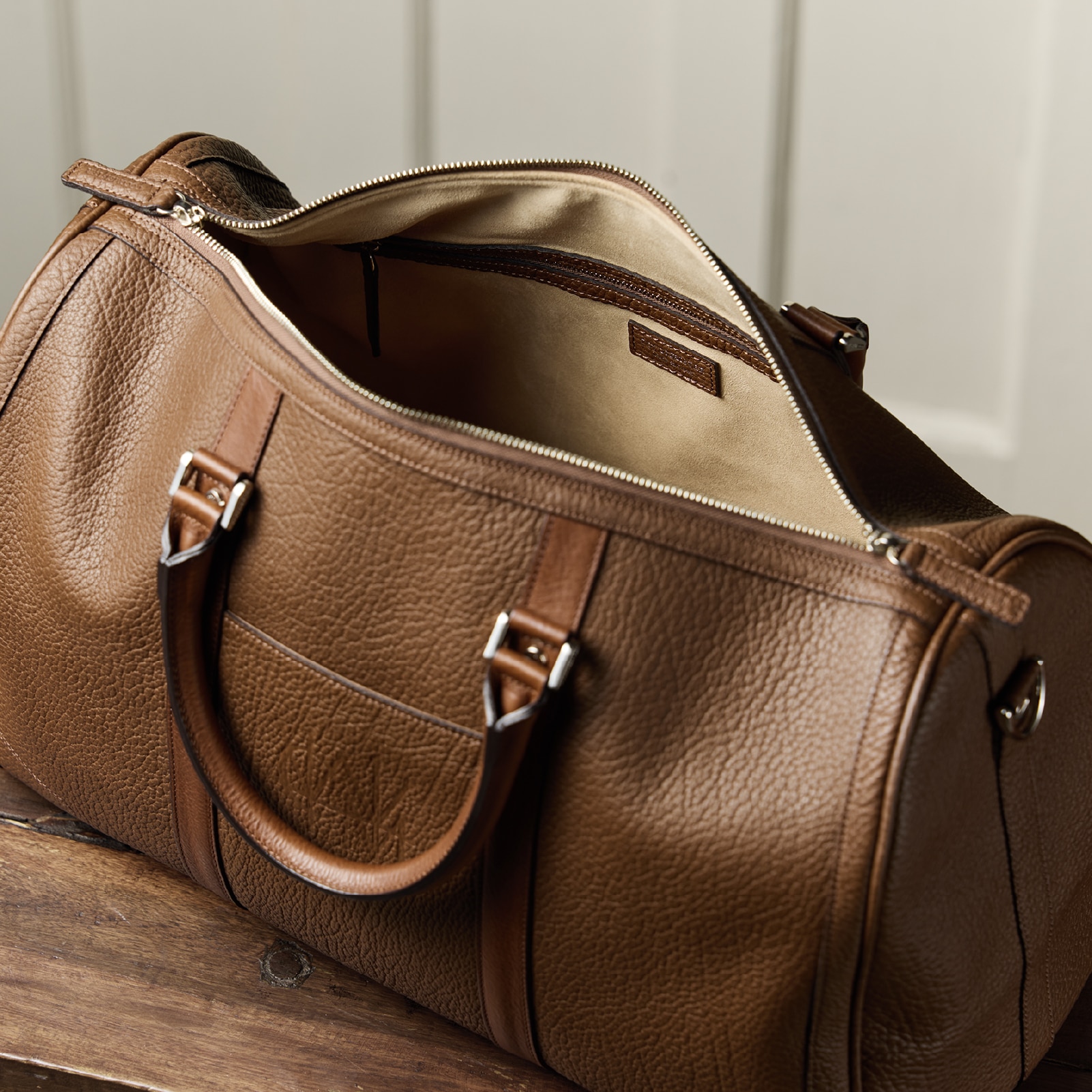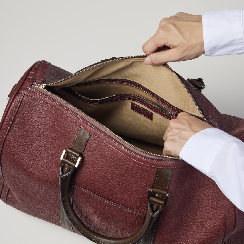 Detail 03皮革が柔らかいので、しっかり開いて入れ易い。内装もラグジュアリーで、荷物を優しく持ち運びます。