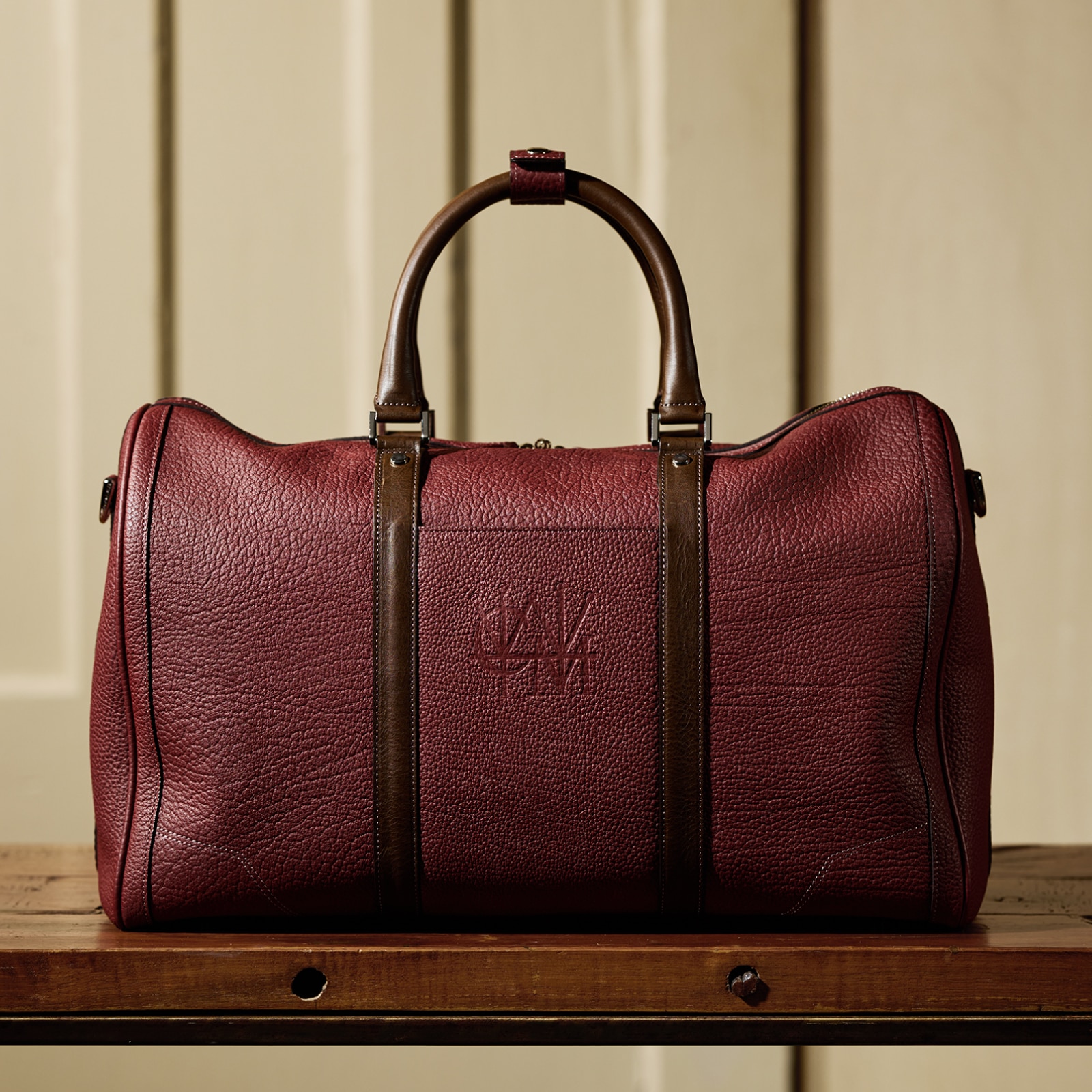 1泊2日の出張シーンなどを想定したミディアムタンクは、ココマイスターのボストンバッグの中では中サイズのボストンになります。今回は全面オイルレザーに比べて軽く持ち運びできるのが特徴です。また、ドライマットな上質感をお楽しみ頂けます。