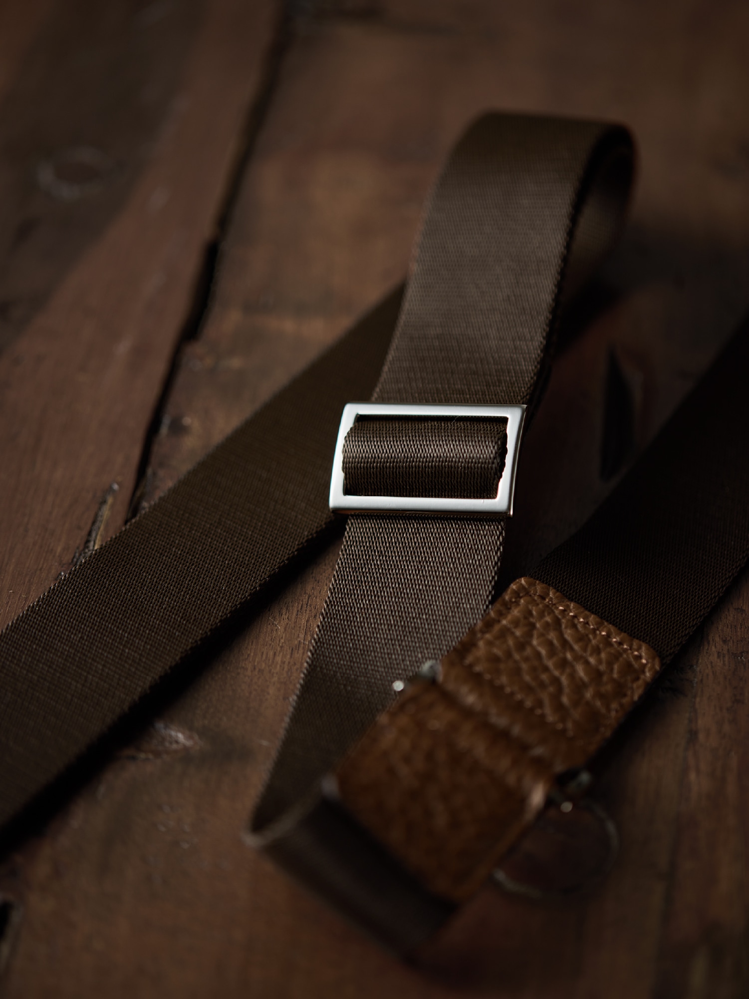 本体に使用したのは経年変化をあまりしない革素材。フランスシュリンクレザーです、軽量かつ容易なメンテナンスが魅力で。持ち運びに便利です。シュリンクレザー特有のシボ感が美しく、圧倒的な上質感に魅了されます。今回はマルティーニレザーと組み合わせ、手に触れる部分の経年変化を楽しみつつ、全体フォルムを優雅に仕立てました。