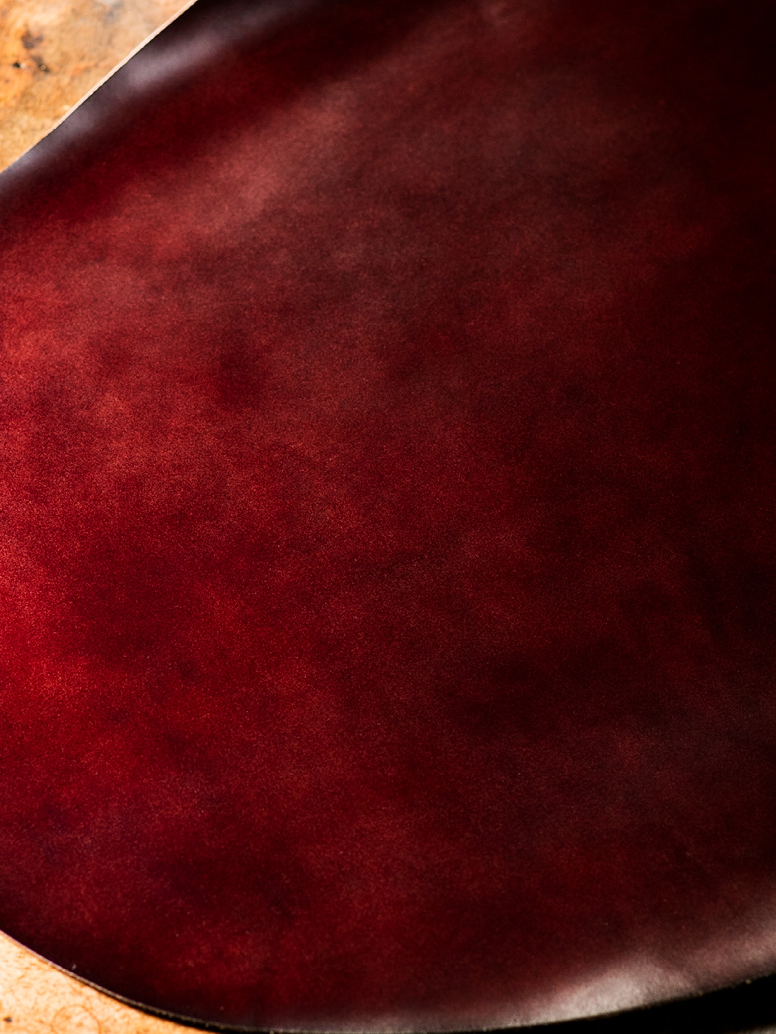 - 植物タンニン100%、アニリン染めの為、メンテナンスは可能です。乾燥が気になるまで、メンテナンスは特に必要がありません。水染めコードバンは非常に繊細な素材ですので、パッチテストは必ず行ってください。水気、湿気にはとても弱いです。