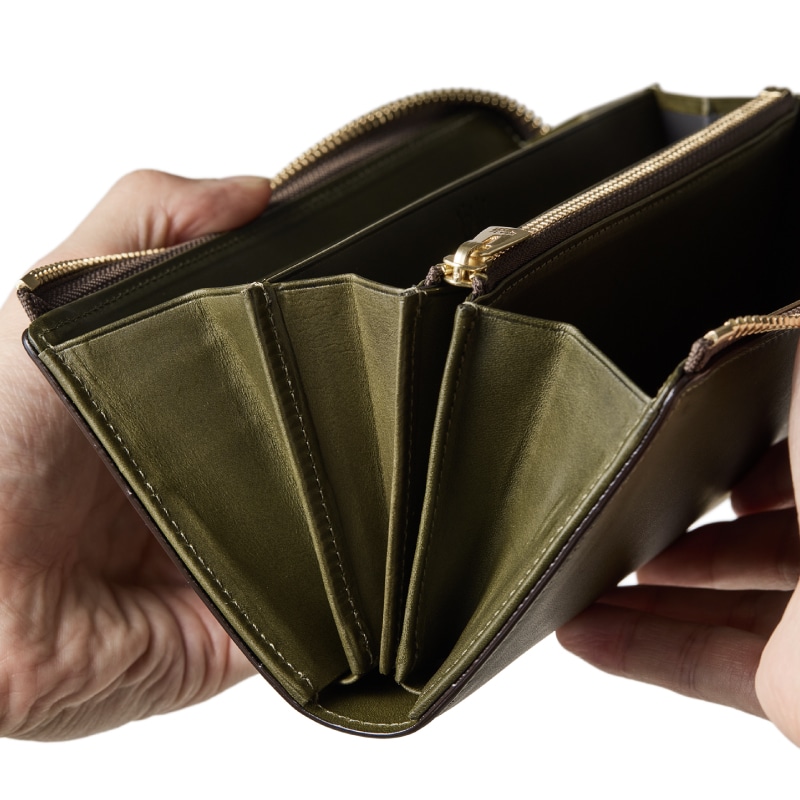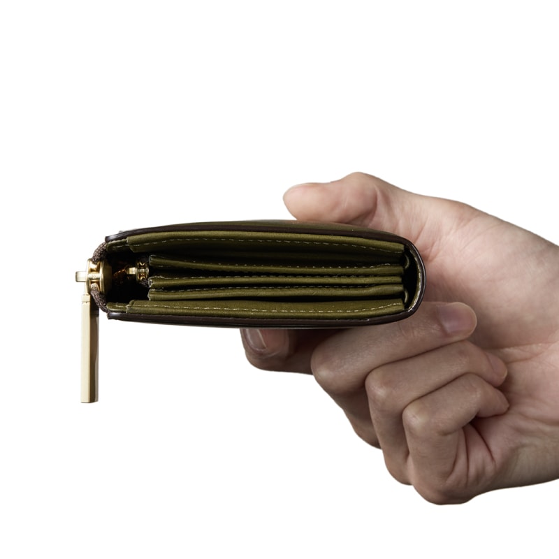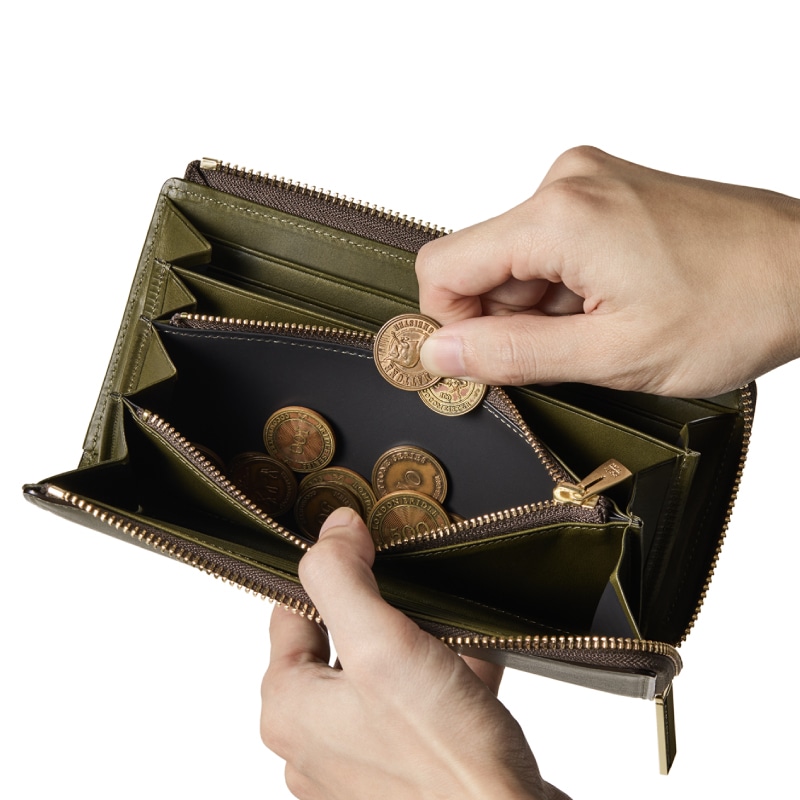 Detail 01大きく開く設計で視認性が高く、中身を素早く確認できます。スムーズな開閉で小銭の出し入れが快適に行え、会計時の動作もスピーディー。収納力がありながらもコンパクトな構造で、使い込むほどに革が馴染み、さらに使いやすくなります。