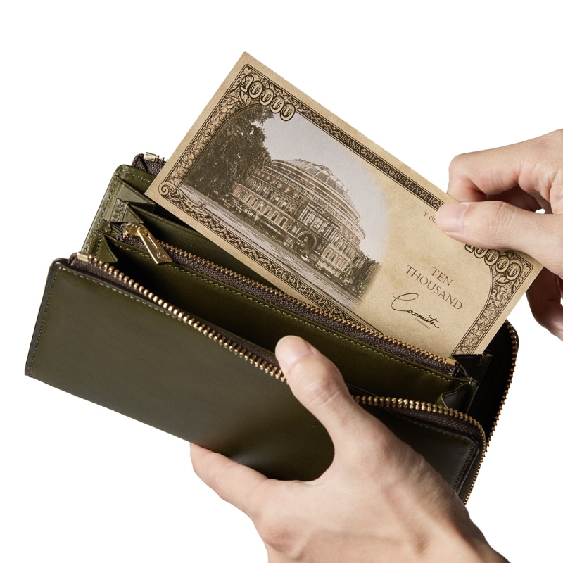 一切の妥協なき熟練仕立てのL字型ラウンドジップ長財布。使い勝手の良さと、紳士物熟練職人が仕立てた重厚なフォルムが魅力です。使い勝手も良く、フォルムも重厚で洗練されてますので、大人にピッタリのアイテムです。