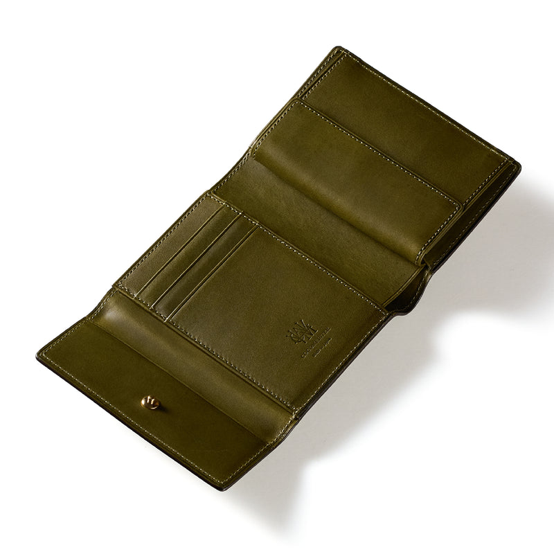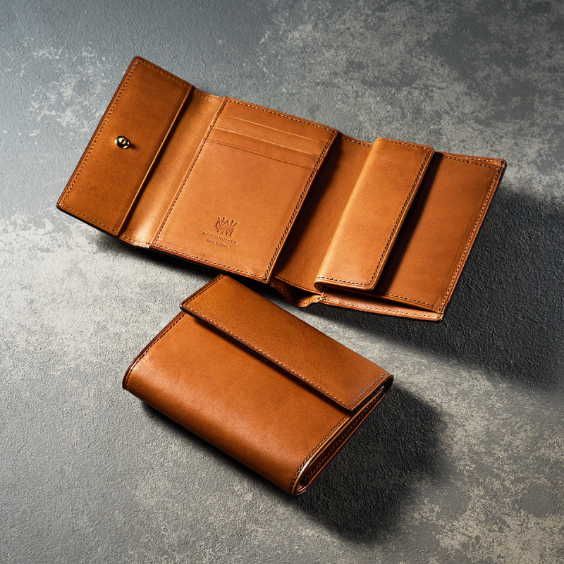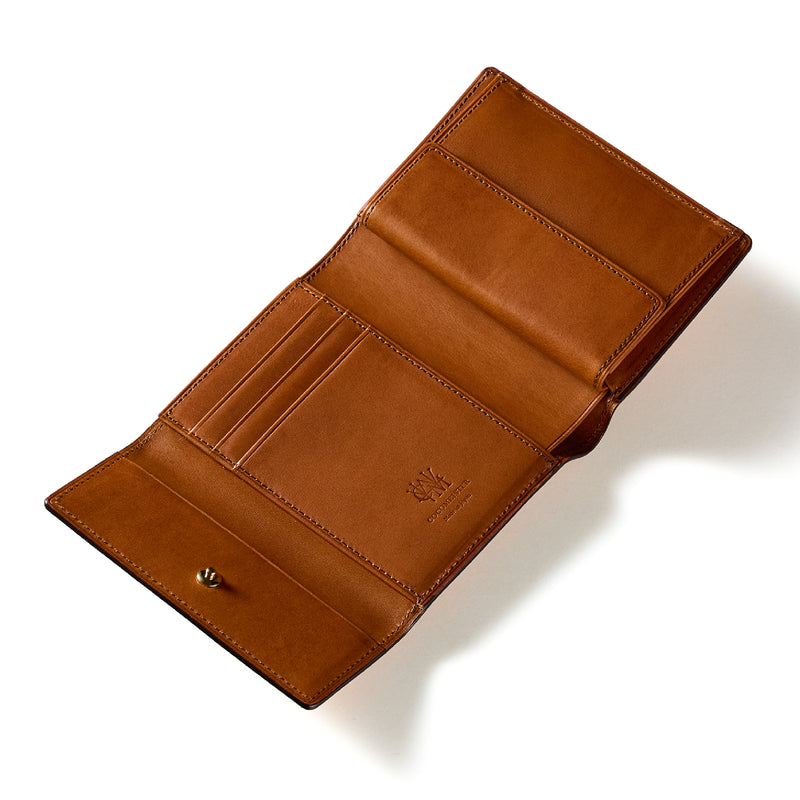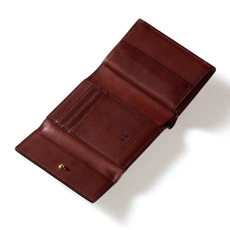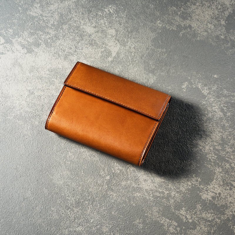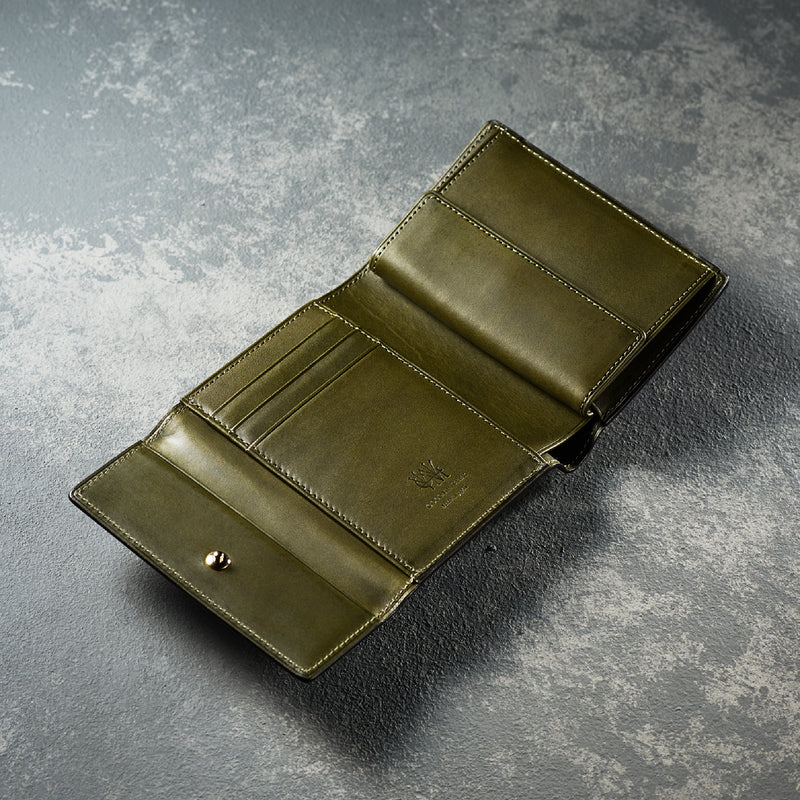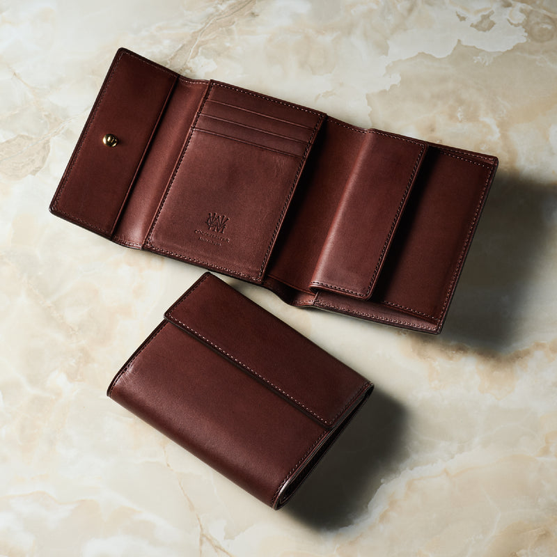 使い込むことに味を深める、時間の経過を革に刻み込む「ミネルバリスシオ」シリーズ。イタリア千年の歴史を持つ伝統製法により作られたバケッタレザー、バダラッシカルロ社を代表するミネルバリスシオを贅沢に全面に使用しました。クラシカルな3つ折り財布。お札、小銭、カードをコンパクトに収納できる機能を持ち、手帳の様なホールド感がお洒落な財布です。| 外寸 | 縦9.4cm×横11.4cm×厚さ2.6cm |