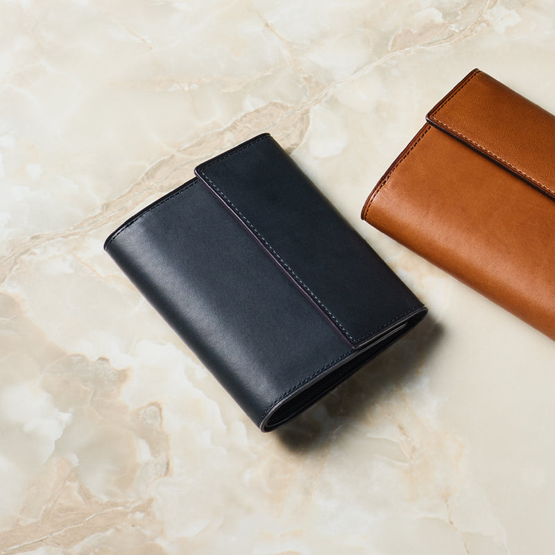 お札入れは1箇所ながら、無駄を省いた設計でスムーズな出し入れが可能。コンパクトながら十分な容量を確保し、折りたたみ財布の機能性と洗練されたデザインが融合。