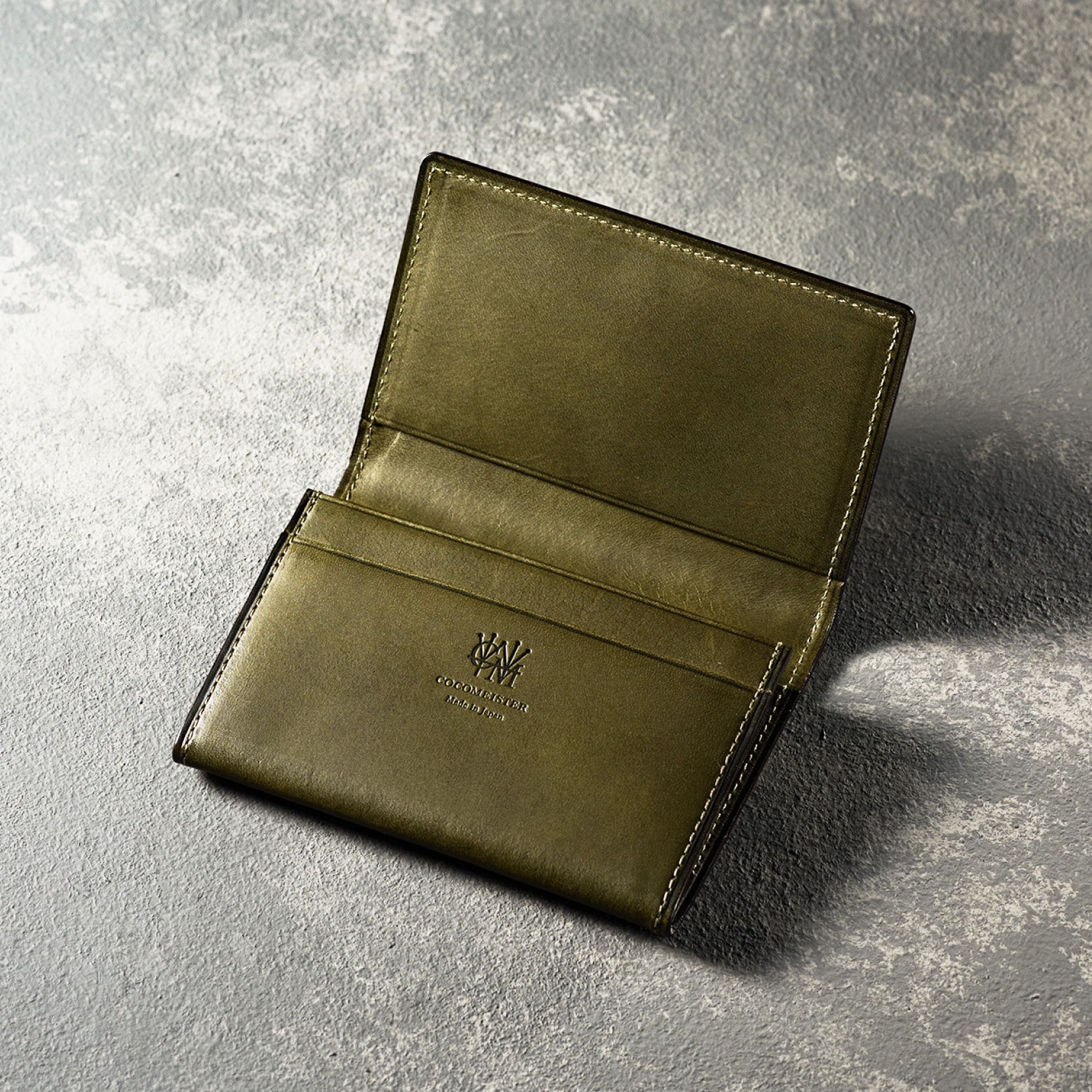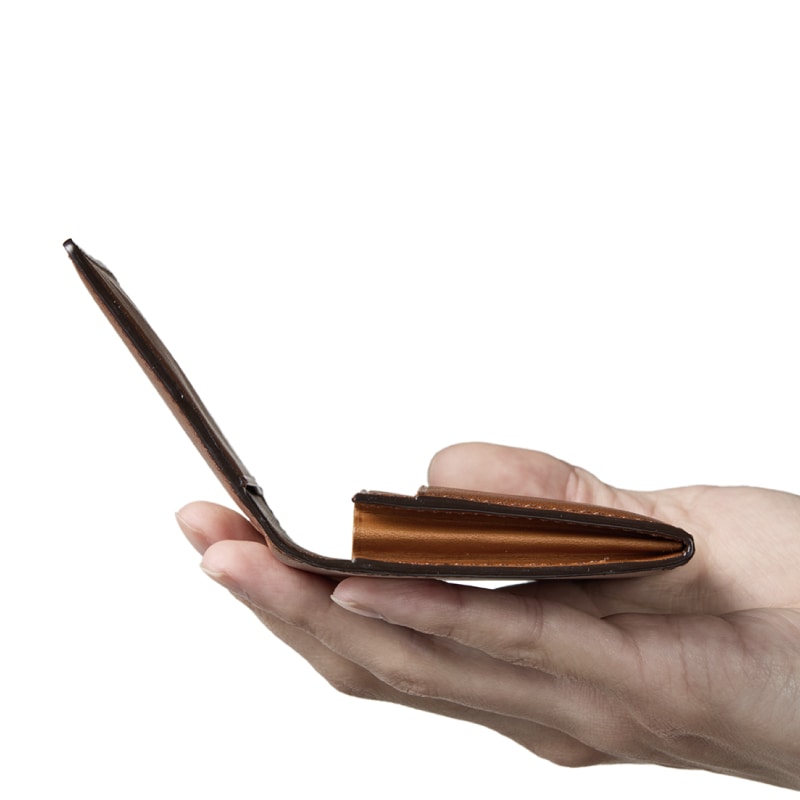 Detail 01マチ付き設計で十分な収納力を確保しつつ、スリムで洗練されたデザインを実現。開閉がスムーズで、名刺の取り出しも素早く行えます。内側にはミネルバリスシオレザーを使用し、高級感と耐久性を両立しました。