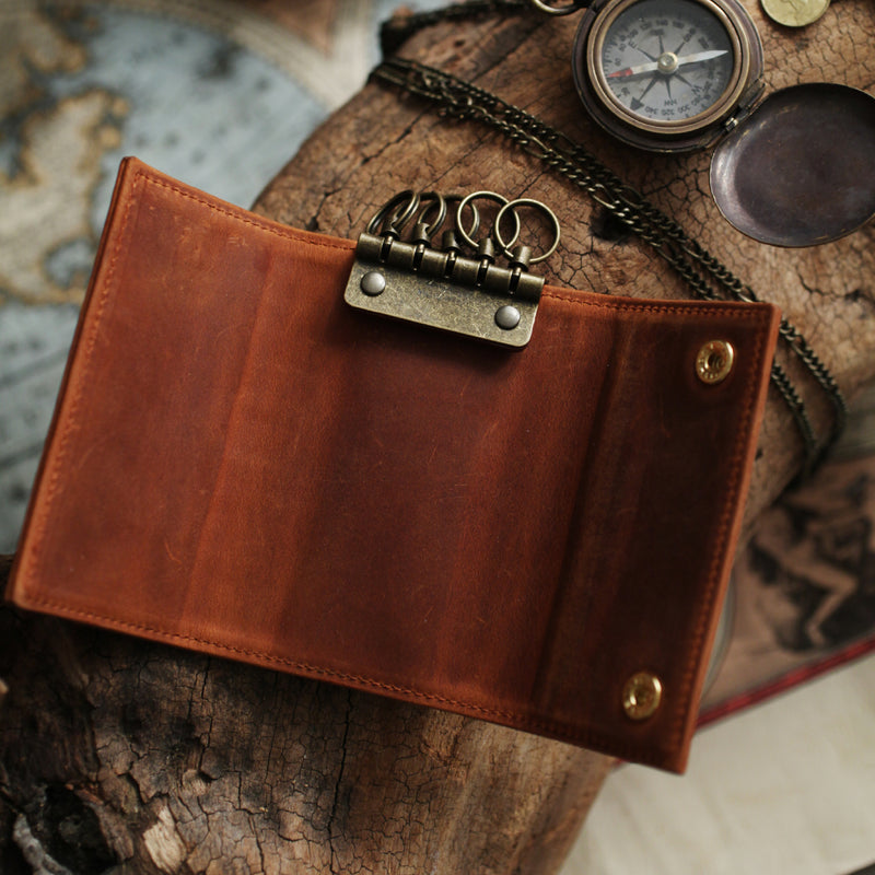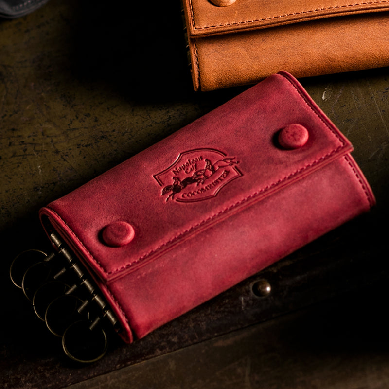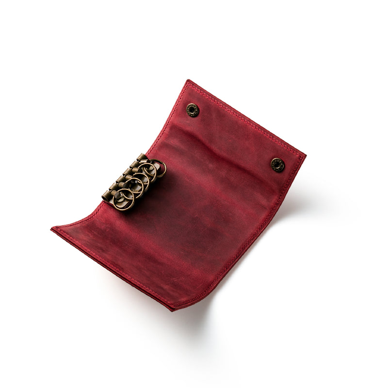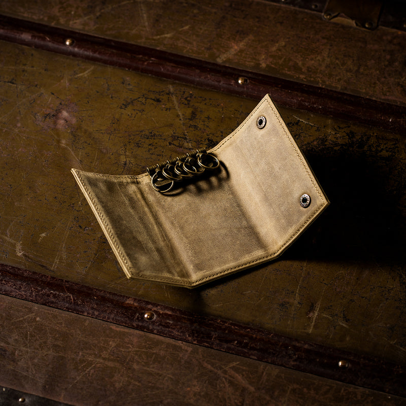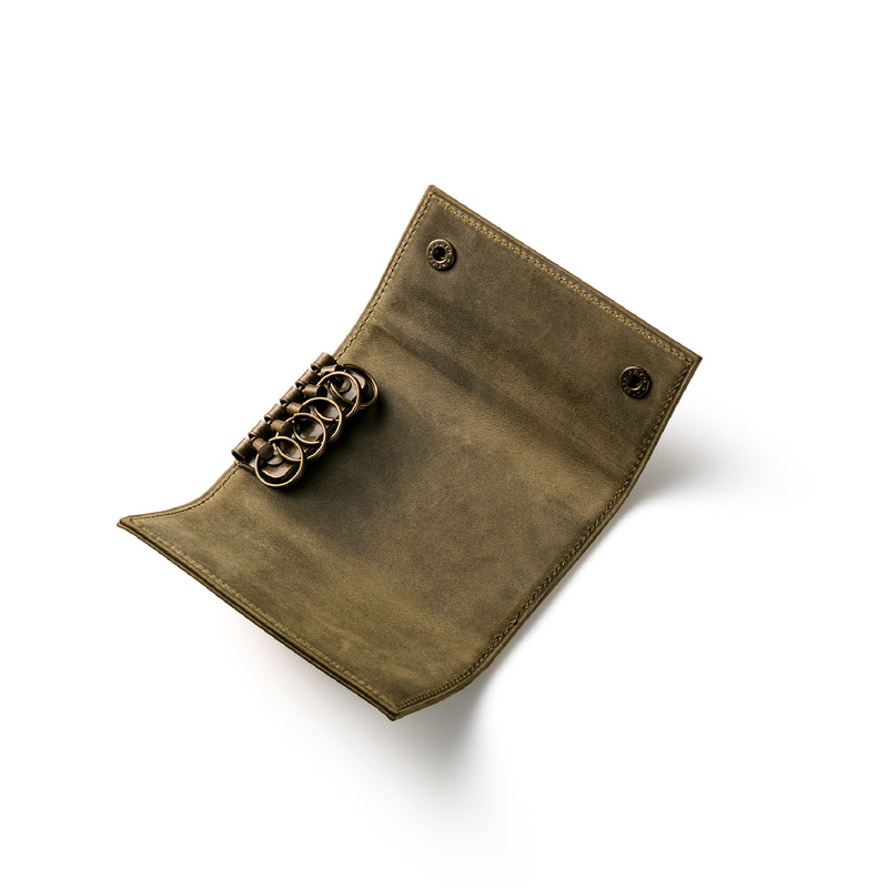 瞬く間に経年変化するイタリア産オイルドヌバックが魅了します。今までに経験したことがない質感が魅力的で、しっとりと手に馴染みます。柔らかい革のクッタリ感も楽しめます。革を折りたたむクラシカルな形のキーケースです。中にある鍵を革を巻くようなイメージで保管するデザインです。革を楽しめるキーケース。| 外寸 | 縦10.2cm×横6.4cm×厚さ2cm |