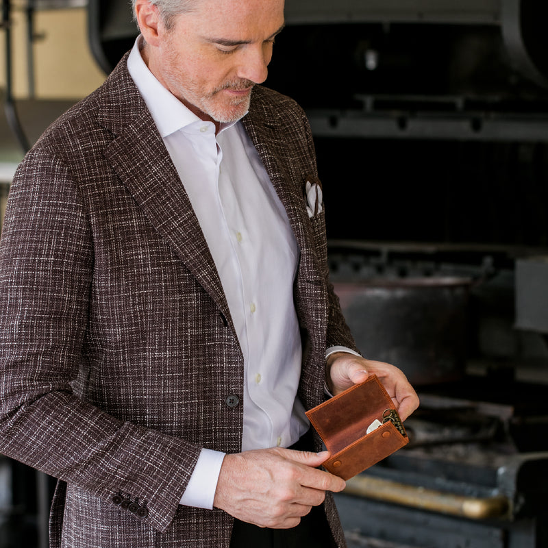 イタリア産オイルドヌバックを使用した、経年変化を前提に設計された特別なレザー。