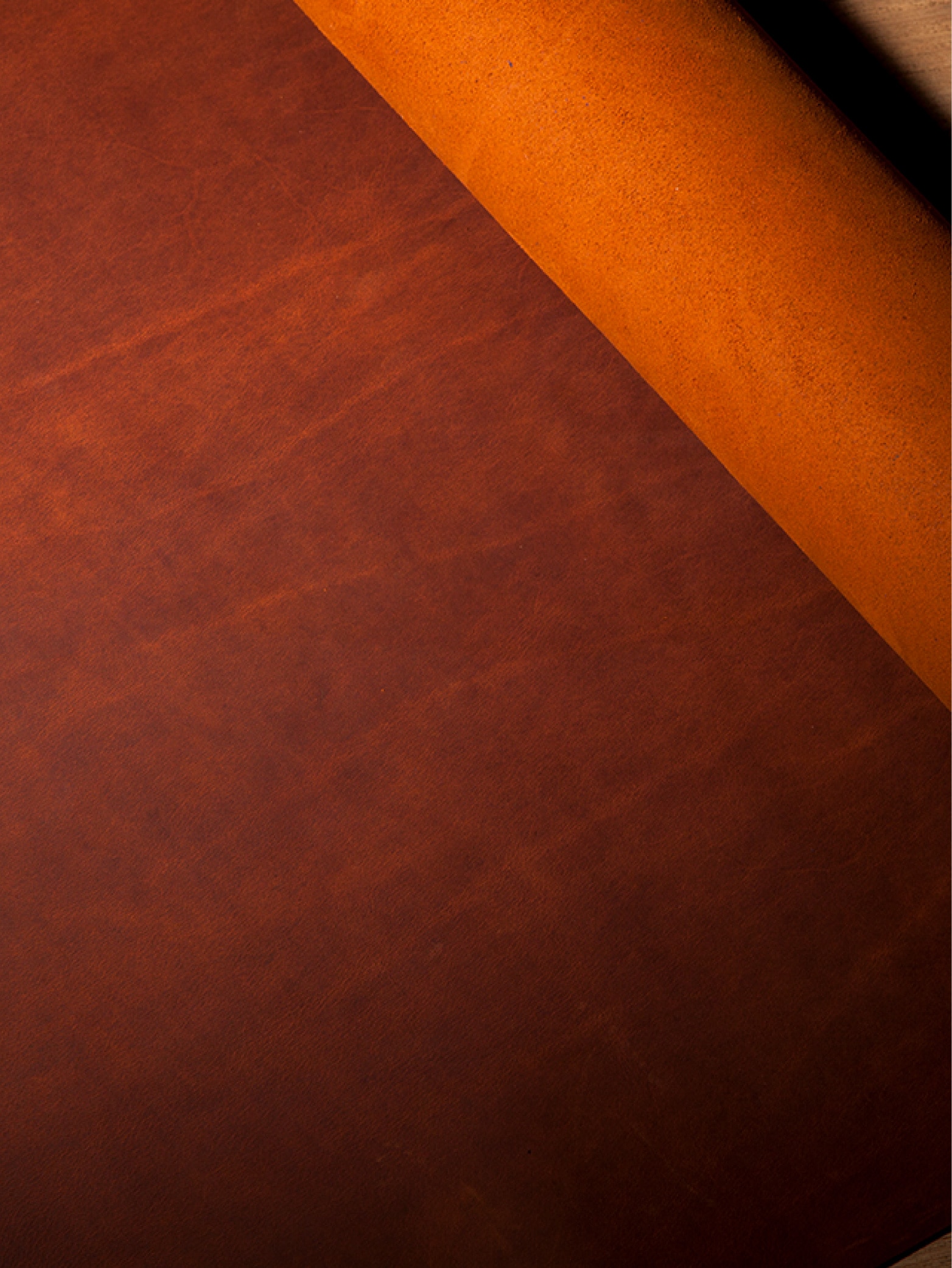 表面をサンドペーパーにより起毛させてから、オイルを複数回入れることで、この独特のウェットな質感を風合いを表現しているが。基本的な製法はシークレットとなっており、深い部分までは知ることが出来ない。そうやって守られた伝統により、製作された革素材。
