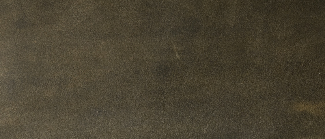 荒野の一角に見えたオアシスからイメージしたグリーンカラー。経年変化すると、深緑へと変化し、更に変化させればより深い緑色を楽しめる。素朴な色合いだが、艶と深みを増し、愛着度も高まる。